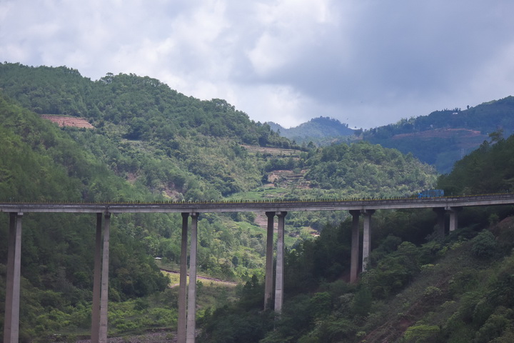 การเดินทางได้อ้อมทางเมืองคุนหมิงเพื่อไปยังจุดหมายปลายทางประจำวันต่อไป วิวระหว่างทางเริ่มสวยงามขึ้นเรื่อยๆ มีบ้านเรือนลดหลั่นกันตามแนวเขาสีเขียวชอุ่ม บางช่วงเป็นเวิ้งทิวเขากับการทำไร่ขั้นบันได ในช่วงสุดท้ายของวัน จัดว่าดีงามมากจริงๆ