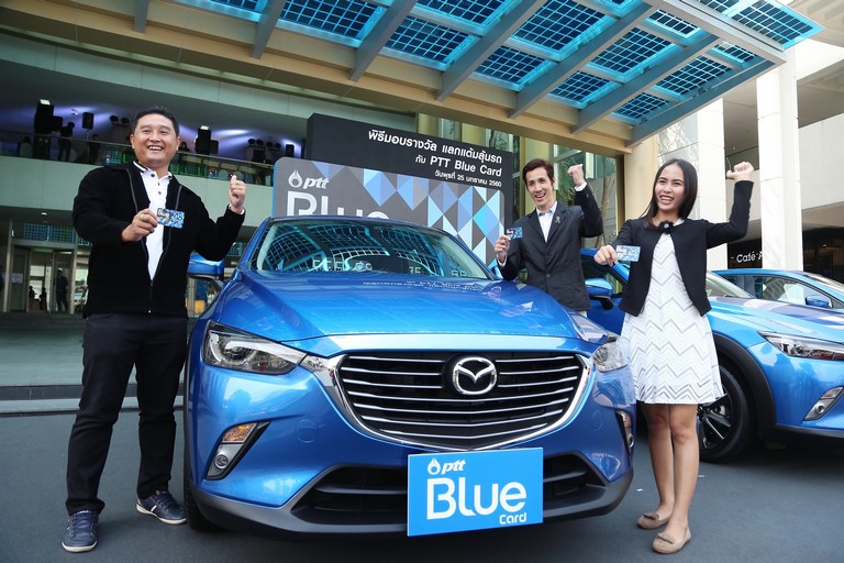 โดยกิจกรรมดังกล่าวจัดขึ้นเมื่อวันที่ 1 กันยายน – 30 พฤศจิกายน 2559 ชิงรางวัลรถ Mazda CX-3 จำนวน 3 คัน รางวัลเติมน้ำมันฟรีทั้งปี จำนวน 60 รางวัล และดื่มเครื่องดื่มที่ Cafe Amazon ฟรีทั้งปี จำนวน 60 รางวัล รวมมูลค่ากว่า 6 ล้านบาท เพื่อแสดงความขอบคุณและคืนกำไรให้กับสมาชิกบัตร PTT Blue Card ที่สนับสนุน ปตท. ด้วยดีมาตลอด ทั้งนี้ มีผู้โชคดีร่วมรับรางวัลทั้งหมด 123 ท่านจากทั่วประเทศ ซึ่งผู้ได้รับรางวัลที่หนึ่งคือ คุณโยธิน มหาพรหม จังหวัดนนทบุรี, คุณธิติมา สิมาพา จังหวัดอุดรธานี และคุณลิปิกร ขวาละคร จังหวัดสกลนคร