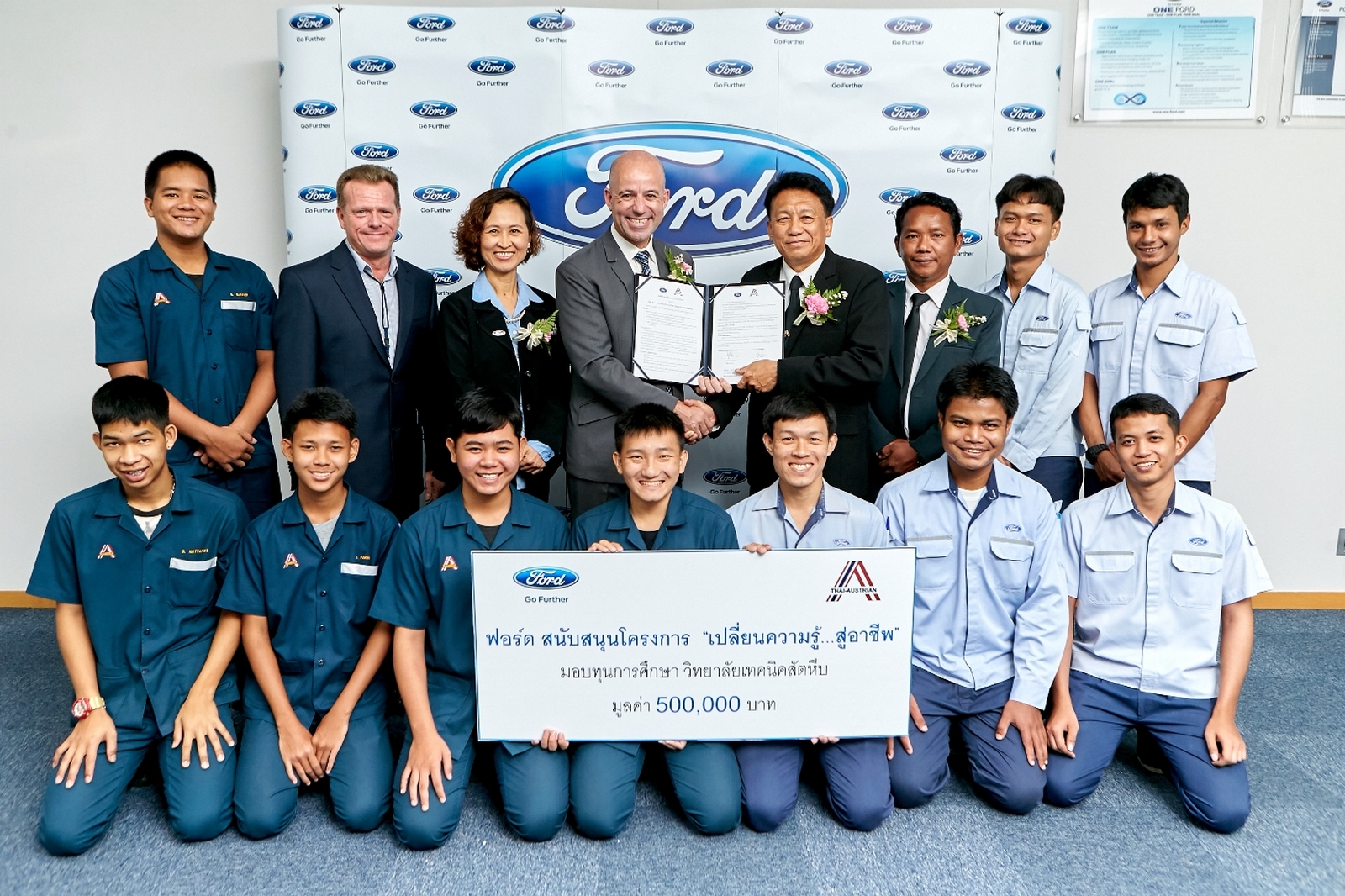 - ฟอร์ดมอบทุนการศึกษา 10 ทุน รวมมูลค่า 500,000 บาท โดยมีวัตถุประสงค์เพื่อเสริมสร้างความรู้ความสามารถในภาคทฤษฎีและภาคปฏิบัติในแผนกสายงานการผลิตให้แก่บุคลากรในแวดวงอุตสาหกรรมยานยนต์