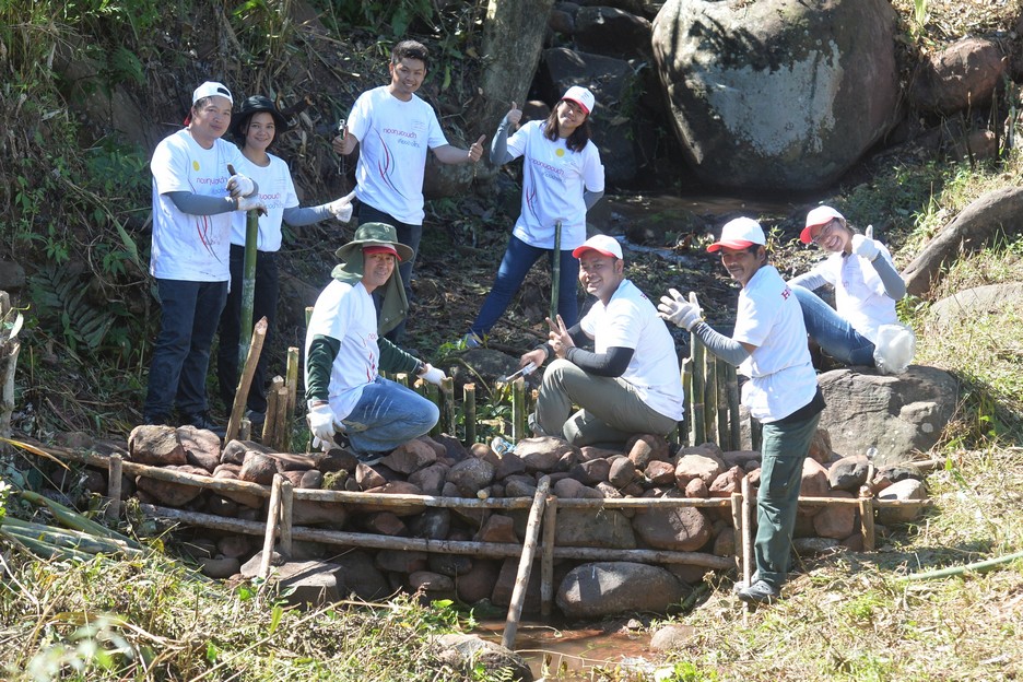 กองทุนฮอนด้าเคียงข้างไทย ภายใต้มูลนิธิฮอนด้าประเทศไทย ผสานความร่วมมือกับมูลนิธิอุทกพัฒน์ ในพระบรมราชูปถัมภ์ สานต่อโครงการพัฒนาแหล่งน้ำตามแนวพระราชดำริ พื้นที่ลุ่มน้ำน่าน ปีที่ 2 กับกิจกรรมนำร่องสร้างการมีส่วนร่วมของชุมชนบ้านนาบง กองทัพภาคที่ 3 ร้านผู้จำหน่าย และจิตอาสาจากกลุ่มลูกค้ารถยนต์และรถจักรยานยนต์ฮอนด้าจากจังหวัดน่านและใกล้เคียง ร่วมกันสร้างฝายชะลอน้ำในบริเวณลำห้วยจำนวน 7 ฝายและปลูกพืชอุ้มน้ำบริเวณร่องน้ำ เช่น กล้วยป่า กล้วยน้ำว้า และต๋าว รวม 350 ต้น เพื่อเพิ่มความชุ่มชื้นให้กับป่าต้นน้ำ คาดหลังการดำเนินงานปี 2562 จะสามารถฟื้นฟูพื้นที่เขาหัวโล้นที่ประสบปัญหาภัยแล้งและดินถล่มกว่า 3,000 ไร่ ช่วยให้ประชากรกว่า 4,700 ครัวเรือนมีน้ำอุปโภค-บริโภค และเพิ่มแหล่งน้ำสำรองสำหรับทำการเกษตรได้ตลอดทั้งปี และเป็นชุมชนต้นแบบในการจัดการน้ำอย่างเป็นระบบและยั่งยืน