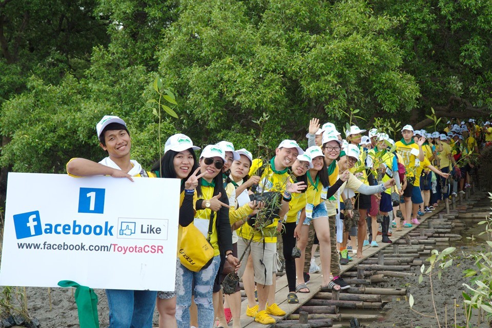 สำหรับกิจกรรมปลูกป่าชายเลนในครั้งนี้ ได้รับความร่วมมือจากอาสาสมัครกว่า 5,000 คน อันประกอบด้วย ตัวแทนจากบริษัทในเครือโตโยต้า กลุ่มพนักงานโตโยต้าและครอบครัว สมาชิกชมรมโตโยต้าจิตอาสา สมาชิกเครือข่าย Toyota CSR Facebook สมาชิก e-TOYOTACLUB ผู้แทนจำหน่ายโตโยต้า ผู้ผลิตชิ้นส่วน ตลอดจนตัวแทนจากหน่วยงานภาครัฐในจังหวัดสมุทรปราการ กองทัพบก และประชาชนทั่วไป ที่มาร่วมแรงร่วมใจปลูกพันธุ์ไม้ชายเลน กว่า 50,000 ต้น ประกอบด้วย ต้นโกงกาง แสมขาว และลำพู เพิ่มพื้นที่ป่าชายเลนครอบคลุมบริเวณกว่า 9 ไร่