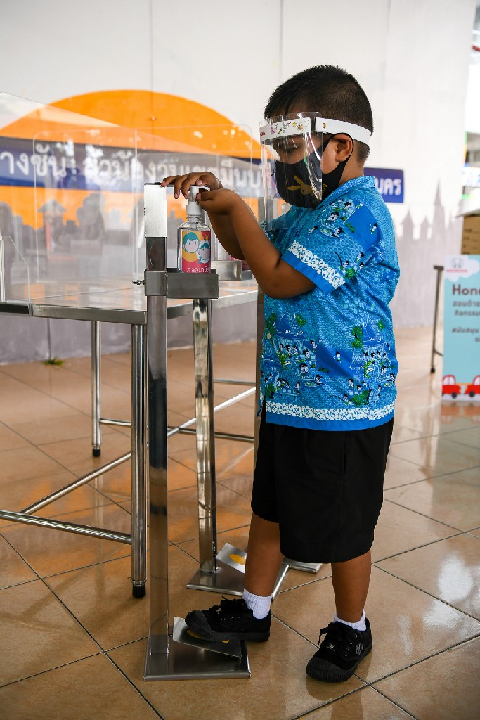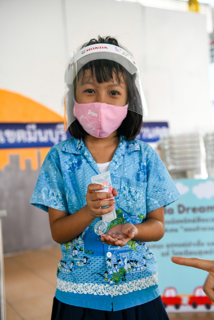 จากสถานการณ์การแพร่ระบาดของเชื้อไวรัสโควิด-19 ซึ่งส่งผลต่อการเปลี่ยนแปลงรูปแบบการใช้ชีวิต ประจำวันจนเกิดเป็นวิถีใหม่ New Normal ทุกๆ สถานที่มีการกำหนดมาตรการสุขอนามัยและความปลอดภัยที่เข้มงวด รวมถึงในโรงเรียนและสถานศึกษา ฮอนด้า ภายใต้ โครงการ “Honda Dream School : ฮอนด้าชวนน้องรักษ์สิ่งแวดล้อมและความปลอดภัย” จึงร่วมเป็นส่วนหนึ่งในการสร้างความปลอดภัยให้กับครูและนักเรียน โดยได้เชิญชวนพนักงานฮอนด้า ทั้งในส่วนของสำนักงาน ส่วนการขายและบริการ โรงงาน จ.พระนครศรีอยุธยา และโรงงาน จ.ปราจีนบุรี ร่วมผลิตอุปกรณ์ป้องกันเชื้อไวรัสโควิด-19 ในบริเวณ “พื้นที่ปันสุข” ซึ่งได้แก่ ฉากป้องกันสำหรับติดตั้งบนโต๊ะอาหารและโต๊ะเรียนวิทยาศาสตร์ 46 ชุด แท่นเหยียบเจลแอลกอฮอล์ล้างมือ 35 แท่น หน้ากาก Face shield 100 ชิ้น รวมถึงร่วมบรรจุเจลแอลกอฮอล์ล้างมือแบบหลอด 300 หลอดและแบบขวด 250 ขวด นอกจากนี้ ฮอนด้ายังได้มอบเครื่องพ่นยาแบบสะพายหลัง Honda เพื่อใช้สำหรับพ่นฆ่าเชื้อ โดยมอบให้กับโรงเรียน 3 แห่ง ได้แก่ โรงเรียนสุเหร่าบางชัน กรุงเทพฯ โรงเรียนบ้านสร้าง (สำริต ภู่เงินอนุสรณ์) จ.พระนครศรีอยุธยา และโรงเรียนบ้านหว้าเอน จ.ปราจีนบุรี