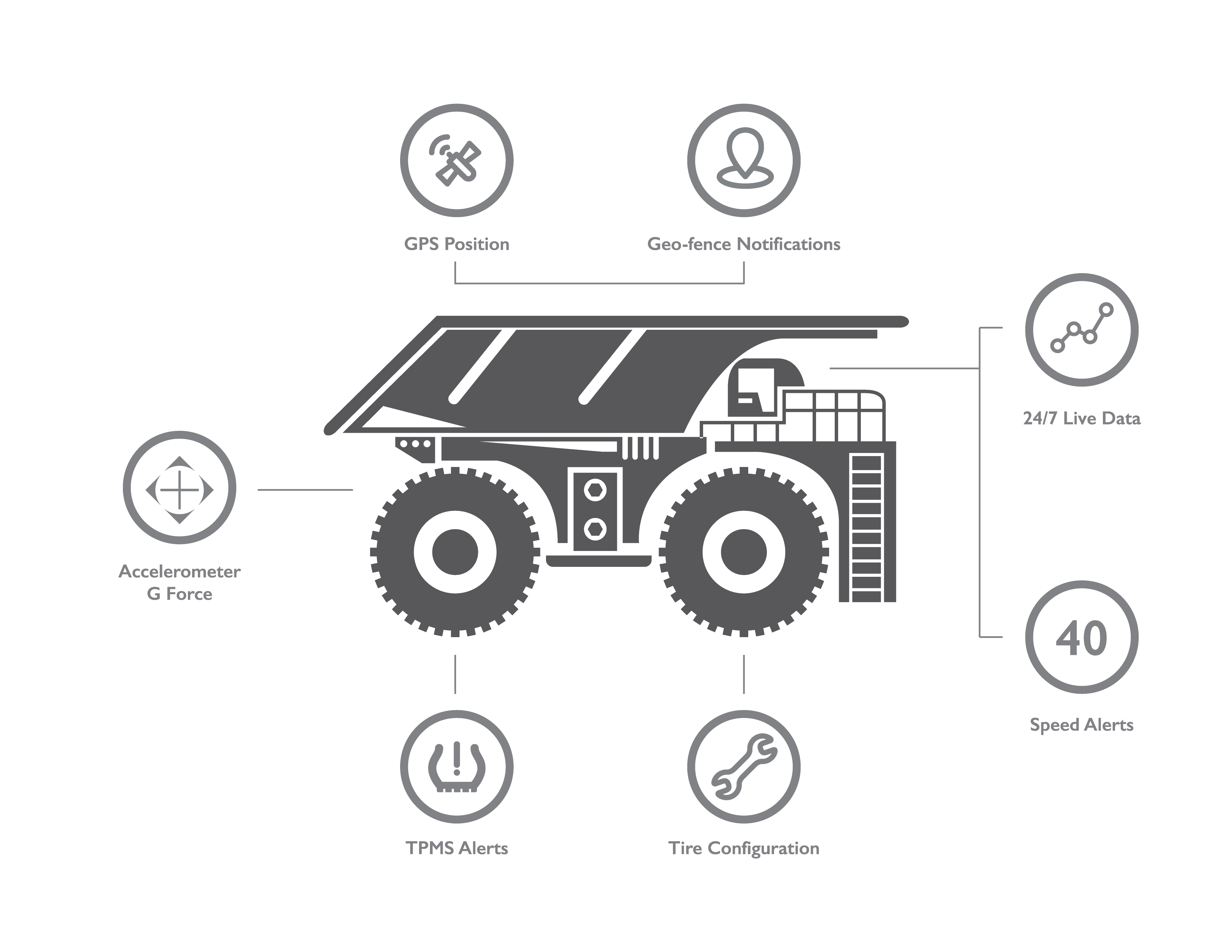 ไอแทรคคือ ผู้ให้บริการการบริหารจัดการโซลูชั่นสำหรับตลาดรถยนต์แบบออฟโรด (OTR) ที่ได้รับความนิยมทั่วโลก โดยได้นำเสนอระบบติดตามแรงดันลมยางแบบครอบคลุม(TPMS) ที่ออกแบบพิเศษสำหรับยางรถยนต์ที่ใช้ในอุตสาหกรรมเหมือง นอกจากจะสามารถติดตามอุณหภูมิและแรงดันลมยางแล้ว แพลตฟอร์มการจัดการยางรถของไอแทรคยังเป็นเทคโนโลยีที่สามารถใช้ประโยชน์จากข้อมูลตำแหน่งเพื่อติดตั้งสิ่งกีดขวางที่มองไม่เห็นในโลกแห่งความเป็นจริง (Geofencing) ที่จะแจ้งเตือนเมื่อรถออกนอกพื้นที่