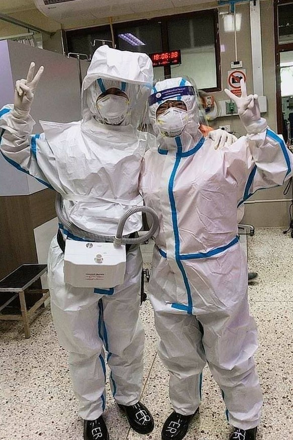 ด้าน พ.ญ. ณัฏฐาพร หะรังศรี วิสัญญีแพทย์ โรงพยาบาลระนอง กล่าวถึงประสบการณ์การใช้นวัตกรรมหน้ากากแรงดันบวกและแรงดันลบของกองทุนฮอนด้าฯ ในการรักษาผู้ป่วยติดเชื้อโควิด-19 ว่า “จุดเด่นของนวัตกรรมหน้ากากแรงดันลบและแรงดันบวก คือเป็นส่วนหนึ่งของอุปกรณ์ป้องกันภัยส่วนบุคคลทางการแพทย์ซึ่งสามารถปรับใช้งานได้ 2 รูปแบบ คือ แรงดันลบ ใช้ในการเคลื่อนย้ายผู้ติดเชื้อโควิด-19 และแรงดันบวก ใช้เพื่อป้องกันและช่วยให้บุคลากรทางการแพทย์หายใจสะดวก หน้ากากมีน้ำหนักเบา ใส่สบายไม่แนบหน้าเกินไป ที่สำคัญคือสามารถปรับระดับลมได้ ซึ่งช่วยให้อากาศถ่ายเท และช่วยลดการเกิดฝ้าบนหน้ากากขณะอากาศร้อน จึงทำให้สามารถให้การดูแลรักษาผู้ป่วยได้นาน และมีประสิทธิภาพมากขึ้น โดยเฉพาะอย่างยิ่งในการผ่าตัดหรือการใส่ท่อช่วยหายใจ ผู้ป่วยมีโอกาสที่จะไอ ทำให้เชื้อที่อยู่ในระบบทางเดินหายใจกระจายเยอะขึ้น ซึ่งขณะนี้อุปกรณ์ป้องกันภัยส่วนบุคคลทางการแพทย์ยังเป็นที่ต้องการอย่างมาก”