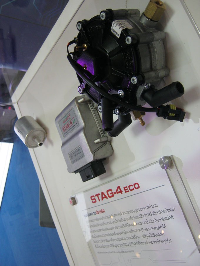 รุ่น STAG-4 ECO เป็นกล่อง ECU ที่ถูกพัฒนาจาก STAG-200 แถมยังมีราคาที่ประหยัดกว่าเดิมแต่มีคุณสมบัติที่เหนือกว่าในเรื่องของวัสดุกล่องทำจากอลูมิเนียมสามารถกันน้ำได้ สามารถควบคุมระบบการทำงานได้อย่างอัตโนมัติโดยเปลี่ยนจากระบบน้ำมันเป็นระบบแก็ส ในกรณีที่มีการรั่วซึมหรือแก็สหมด ระบบความปลอดภัยในการตัดจากระบบแก็สเป็นระบบน้ำมันเพียง 0.05 วินาทีพร้อมทั้งส่งสัญญาณเสียงเตือนด้วย