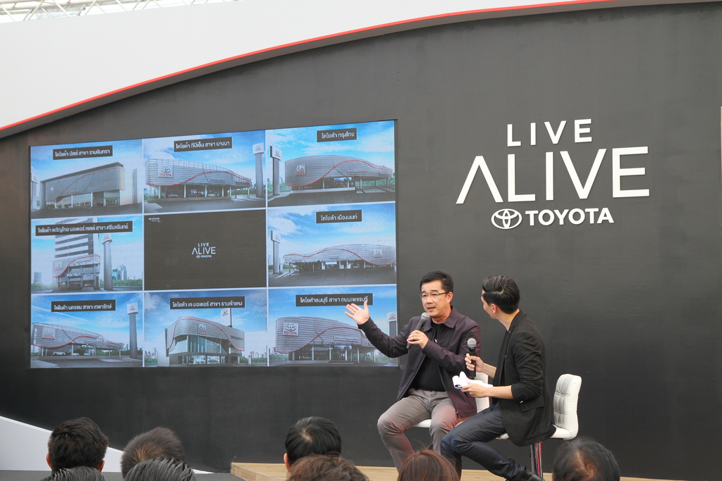 พร้อมกันนี้ เพื่อตอบรับกับความต้องการของคนรุ่นใหม่ในการเลือกรถยนต์และการบริการ ที่เหมาะกับตัวเอง ภายใต้แนวคิด LIVE ALIVE โตโยต้าจึงขอแนะนำ “ALIVE SPACE” โชว์รูมรูปแบบใหม่ที่มีความทันสมัย ครบครันด้วยเทคโนโลยี การนำเสนอข้อมูลผลิตภัณฑ์ในรูปแบบดิจิทัล พร้อมสิ่งอำนวยความสะดวกมากมาย เพื่อตอบรับกับพฤติกรรมและไลฟ์สไตล์ของคนรุ่นใหม่”