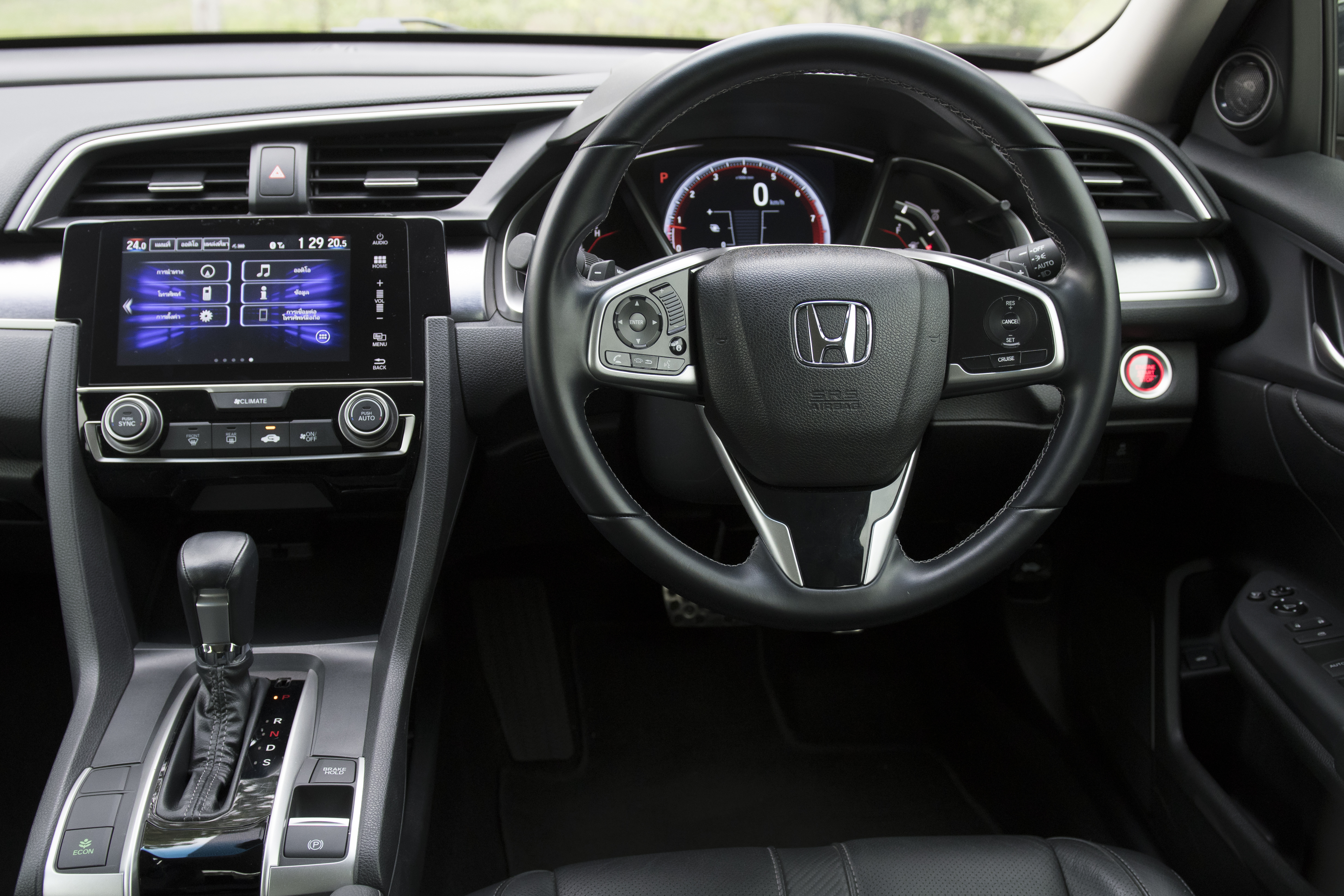 ภายในห้องโดยสารของ All New Honda Civic RS มากับการออกแบบที่ล้ำสมัยมากขึ้น พร้อมด้วยการยกระดับวัสดุที่ใช้ บนพื้นฐานของความพยายามในการสมผสานความสปอร์ต และความพรีเมี่ยมเข้าไว้ด้วยกัน โดยใช้หลัก “Man Maximum, Machine Minimum” ซึ่งให้ความสำคัญกับผู้ขับขี่ และผู้โดยสารเป็นหลัก เพื่อให้สามารถควบคุมสิ่งอำนวยความสะดวกต่างๆ ได้อย่างง่ายดาย เช่น กุญแจรถ Engine Remote Start ที่สามารถสั่งการสตาร์ทรถ และเปิดระบบปรับอากาศได้, ระบบสตารทเครื่องยนต์อัจฉริยะแบบ One Push Ignition System, ระบบปรับอากาศอัตโนมัติแบบยกอุณหภูมิอิสระซ้ายขวา, มาตรวัดพร้อมหน้าจอแสดงข้อมูล TFT, หน้าจอสัมผัสขนาด 7 นิ้วแบบ Advanced Touch รองรับ Apple Car Play, พวงมาลัยมัลติฟังค์ชั่นปรับระดับได้ เช่นเดียวกับเบาะนั่งฝั่งคนขับปรับไฟฟ้า ตลอดจนฟังค์ชั่นอื่นๆ ที่ติดตั้งมาให้เป็นอุปกรณ์มาตรฐานด้วยเช่นกัน ในขณะที่ด้านหลังนั้นยังมาพร้อมกับพื้นที่เก็บสัมภาระขนาดใหญ่ ด้วยปริมาตรการจุถึง 525 ลิตรเลยทีเดียว