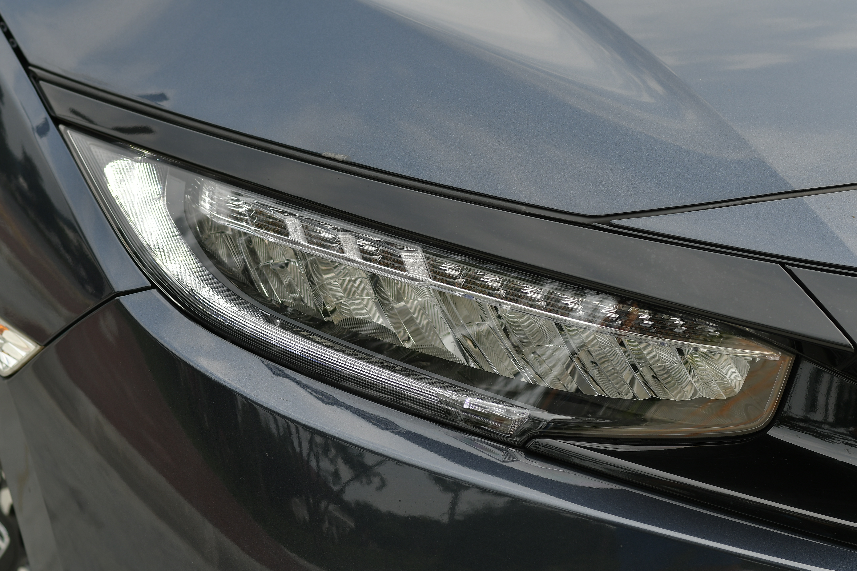 สำหรับ All New Honda Civic RS นี้ เรียกได้ว่าเป็นอีกหนึ่งก้าวสำคัญแห่งการเปลี่ยนแปลงของค่าย Honda ก็ว่าได้ ตั้งแต่เรือนร่างที่แสดงถึงการเติบโตขึ้น ด้วยมิติตัวถังความยาว 4,630 มม. ความกว้าง 1,799 มม. ความสูง 1,416 มม. วางตัวบนระยะฐานล้อยาว 2,698 มม. ที่มีแทรคล้อหน้ากว้าง 1,547 มม. ด้านหลังกว้าง 1,563 มม. พร้อมด้วยการดีไซน์รูปลักษณ์ราวกับจะสื่อถึงความพยายามในการผสมผสานความสปอร์ตของยนตรกรรมสไตล์ Coupe ลงไปในรถซีดาน เช่น แนวเส้นหลังคาที่ไล่ระดับความลาดเอียงลงในด้านหลังรับกับ Wing สปอยเลอร์ ซึ่งมากับไฟเบรกดวงที่ 3 และชุดไฟท้ายแบบ LED รูปทรง C – Shaped ซึ่งสร้างความโดดเด่นเป็นอย่างมากให้กับมุมมองจากด้านหลัง ในขณะที่มุมมองจากด้านหน้านั้นเราชื่นชอบดีไซน์ของชุดไฟหน้า และชุดไฟ DRL – Daytime Runing Light ตลอดจนชุดกันชนหน้าสไตล์ RS มากกว่า แต่กับกระจังหน้านั้นในความรู้สึกส่วนตัวเรารู้สึกว่าการให้โทนสีโอเค แต่อยากได้ความสปอร์ตในส่วนของกระจังหน้าที่อยากให้ดีไซน์เฉี่ยวกว่านี้