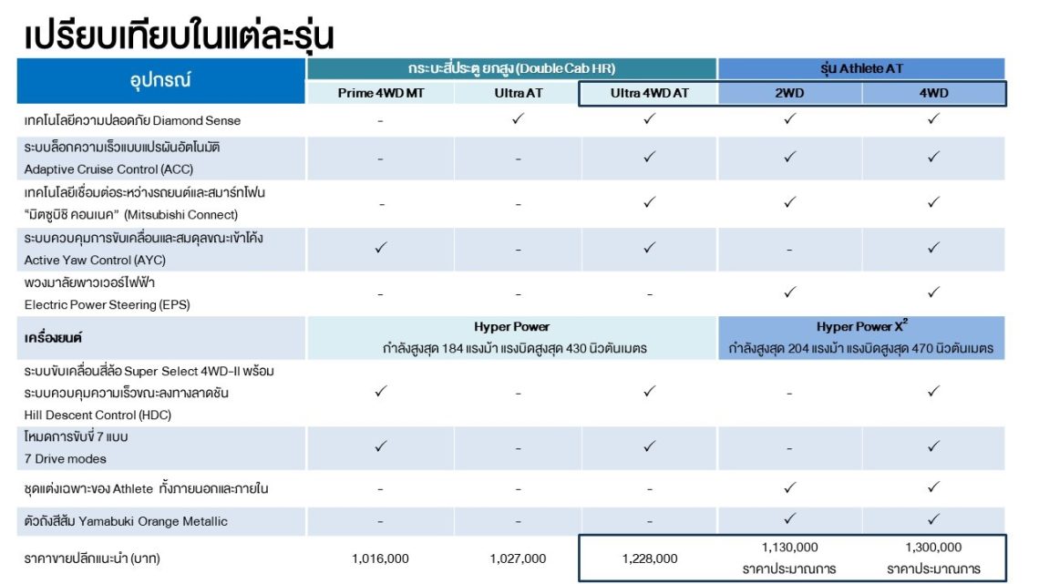 มิตซูบิชิ มอเตอร์ส ประเทศไทย เปิดสเปค เปิดราคา ออล-นิว มิตซูบิชิ ไทรทัน แอทลีท และ ออล-นิว มิตซูบิชิ ไทรทัน ดับเบิ้ล แค็บ อัลตร้า