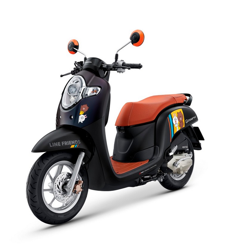 เอ.พี. ฮอนด้า ผู้นำแห่งวงการรถจักรยานยนต์ไทย ผนึกกำลังครั้งสำคัญกับ ไลน์ เฟรนด์ คาแรคเตอร์แบรนด์ชั้นนำระดับโลก เปิดตัว New Scoopy i LINE FRIENDS Special Edition รถแฟชั่นเอ.ที. รุ่นพิเศษ ดีไซน์โดนใจวัยรุ่นภายใต้คอนเซปต์ “เพื่อนใหม่ ลายใหม่ น่ารักโดนใจ” โดดเด่นด้วยกราฟิก LINE FRIENDS characters บราวน์และผองเพื่อน กำลังสนุกอยู่บนตัวรถรอบคัน ผลิตจำนวนจำกัดเพียง 5,000 คันเท่านั้น ราคาขายปลีกแนะนำ 53,500 บาทมาพร้อมกับกิฟท์เซ็ท สเปเชียล อิดิชั่น 4 รายการ ประกอบด้วยกระเป๋าเป้ไลน์เฟรนด์ ที่ชาร์จไลน์เฟรนด์ สายชาร์จไลท์นิ่งลายบราวน์ สายชาร์จไมโครยูเอสบีลายโคนี่ วางจำหน่ายพร้อมกันทั่วประเทศตั้งแต่วันที่ 27 กรกฏาคมนี้เป็นต้นไป ที่ศูนย์ Honda Wing Center