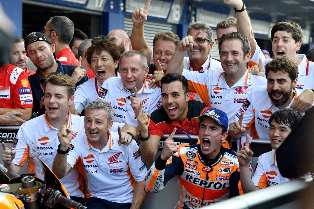 ถัดมาที่การแข่งขันในสนาม คงไม่มีค่ายรถใดยิ้มแก้มปริเท่ากับ “เอ.พี.ฮอนด้า” อีกแล้ว เมื่อผลงานที่เกิดขึ้นในสนามช้าง อินเตอร์เนชันแนล เซอร์กิต พิสูจน์ให้เห็นแล้วว่าพวกเขาคือเบอร์ 1 ของโลกอย่างไม่ต้องสงสัย โดยเฉพาะรุ่นไฮไลท์อย่าง โมโตจีพี ที่ “มาร์ค มาร์เกซ” ยอดนักบิดซูเปอร์สตาร์ชาวสแปนิช สังกัด เรปโซล ฮอนด้า บิดเข้าป้ายคว้าแชมป์ที่สนามแห่งนี้เป็นรายแรก จนทำให้คะแนนสะสมตอนนี้นำเป็นจ่าฝูง และกำลังนับถอยหลังสู่การเป็นแชมป์โลกสมัยที่ 5 ในสนามถัดไปที่ญี่ปุ่นในอีกไม่กี่อึดใจ