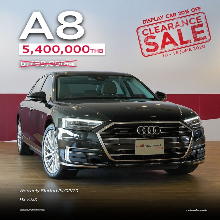 - A8L 55 TFSI quattro Premium จากราคา 6.799 ล้านบาท เหลือเพียง 5.400 ล้านบาท ( ไมล์ 1xx กิโลเมตร)