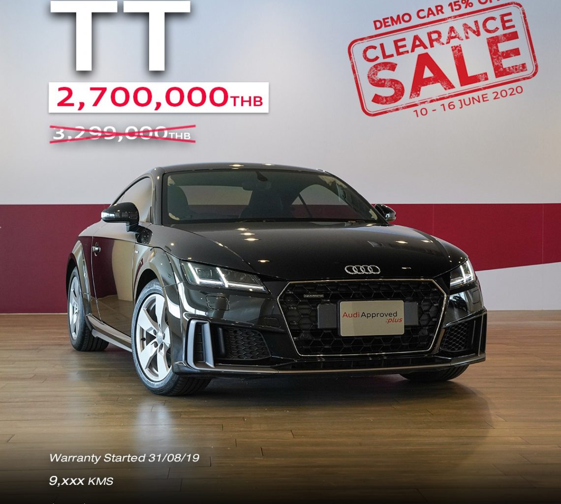- TT Coupe 45 TFSI quattro S line จากราคา 3.299 ล้านบาท เหลือเพียง 2.700 ล้านบาท (ไมล์ 9,xxx กิโลเมตร)