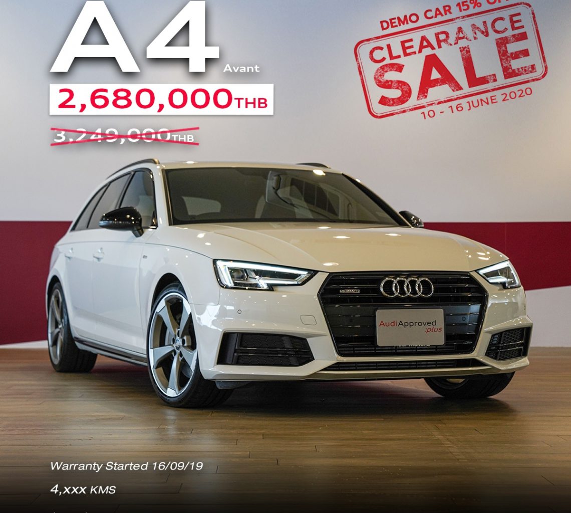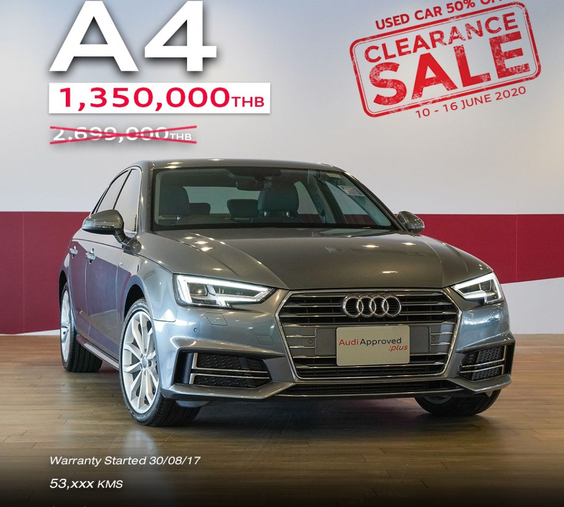 - A4 40 TFSI S line จากราคารถใหม่ 2.699 ล้านบาท เหลือเพียง 1.350 ล้านบาท