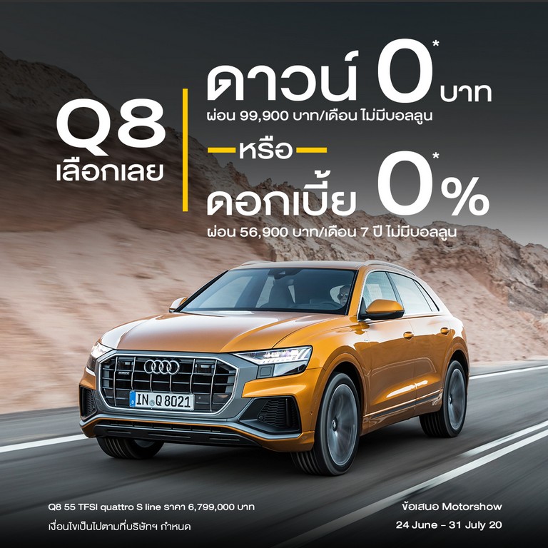 - Audi Q8 ผ่อนต่อเดือนเพียง 56,700 บาท นาน 7 ปี *** ไม่มีบอลลูน