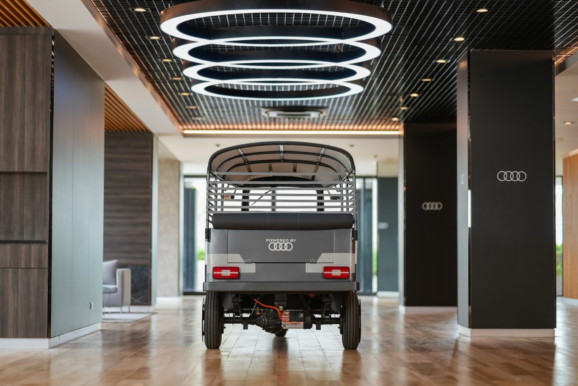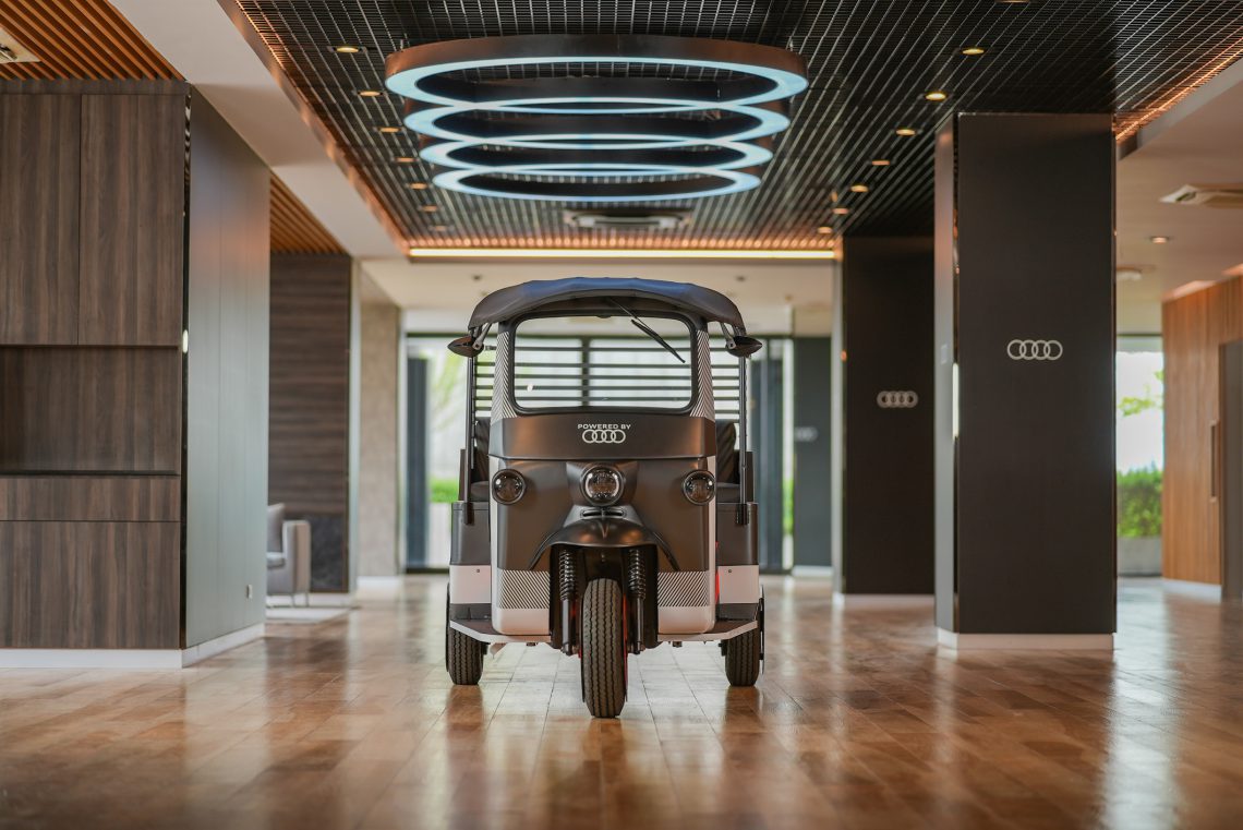 - ครั้งแรกในเอเชียกับ TukTuk ต้นแบบ “e-Rickshaw” โดยเป็นการดัดแปลงการใช้พลังงานจากแบตเตอรี่ของรถไฟฟ้า 100% อย่าง Audi e-tron ที่ผ่านการใช้งานมาแล้ว นำกลับมาใช้ประโยชน์ใหม่ ภายใต้แนวคิด “Second – life Batteries” ซึ่งตัวรถจะเป็นรถตุ๊กตุ๊กที่มาจากประเทศไทย มีอายุถึง 30 ปี ผ่านการปรับโฉมให้ดูทันสมัยขึ้น ที่โรงงานในเมือง Neckarsulm ประเทศเยอรมนี โดยแบตเตอรี่ไฟฟ้าของ Audi e-tron นั้น เป็นแบบ high-energy density ซึ่งมีประสิทธิภาพสูง ถึงแม้ว่าแบตเตอรี่ดังกล่าวจะเคยถูกใช้มาแล้วในรถทดสอบ Audi e-tron ก็ตาม แต่ยังมีกำลังไฟที่เพียงพอ สำหรับการนำไปปรับใช้ในรถตุ๊กตุ๊กที่มีมอเตอร์ไฟฟ้าที่กำลังน้อยกว่าได้เป็นอย่างดี ถือเป็นการพิสูจน์ในคุณภาพของแบตเตอรี่ใช้แล้วของ Audi e-tron ว่ายังสามารถนำไปใช้ต่อได้ สะท้อนวิสัยทัศน์ “The mobility of the future” การขับเคลื่อนแห่งอนาคตของอาวดี้ ที่มุ่งมั่นจะเป็นแรงผลักดันสำคัญในการสร้างโลกแห่งอนาคตที่น่าอยู่อย่างยั่งยืน ด้วยการนำเทคโนโลยีที่ก้าวหน้า มีความคิดสร้างสรรค์ และความกระตือรือร้นที่จะสร้างสังคมที่น่าอยู่ ตัวรถสามารถผลิตกำลังได้สูงสุด 8.6 แรงม้า แรงบิดสูงสุด 34.6 นิวตันเมตร ส่งกำลังผ่านเกียร์ธรรมดา 2 จังหวะ สามารถทำความเร็วสูงสุดได้ 48 กิโลเมตรต่อชั่วโมง