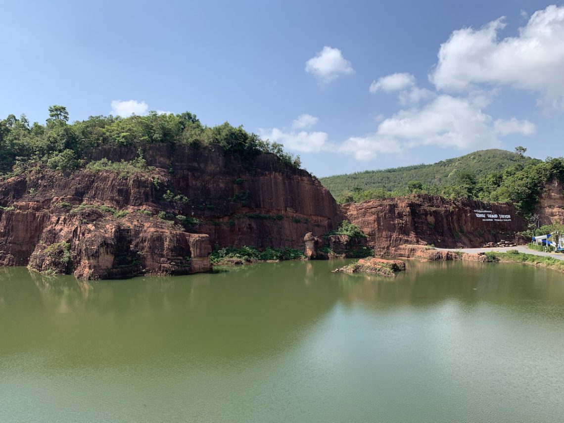 เกาะแมวที่เป็นนิทานพื้นบ้านของที่นี่ แวะพักให้พอหายเหนื่อยก่อนเดินทางกันต่อ โดยใช้แพขนานยนต์ข้ามฟากปากน้ำทะเลสาบสงขลา ก่อนเดินทางไปยังจุดหมายต่อไป เกาะใหญ่แกรนด์แคนยอน ใช้เวลาเดินทางราวๆ ชั่วโมงเศษก่อนที่จะมาถึง เกาะใหญ่ แกรนด์แคนยอน ร้านอาหารและที่พัก ติดวิวภูเขาหินสีแดง ที่ละม้ายคล้ายกับแกรนด์แคนยอน ที่ตอนนี้กำลังเป็นจุดท่องเที่ยวที่กำลังได้รับความนิยม โดยเราใช้เวลาแวะพักรับประทานอาหารกลางวันและพักผ่อนตามอัธยาศัยที่นี่