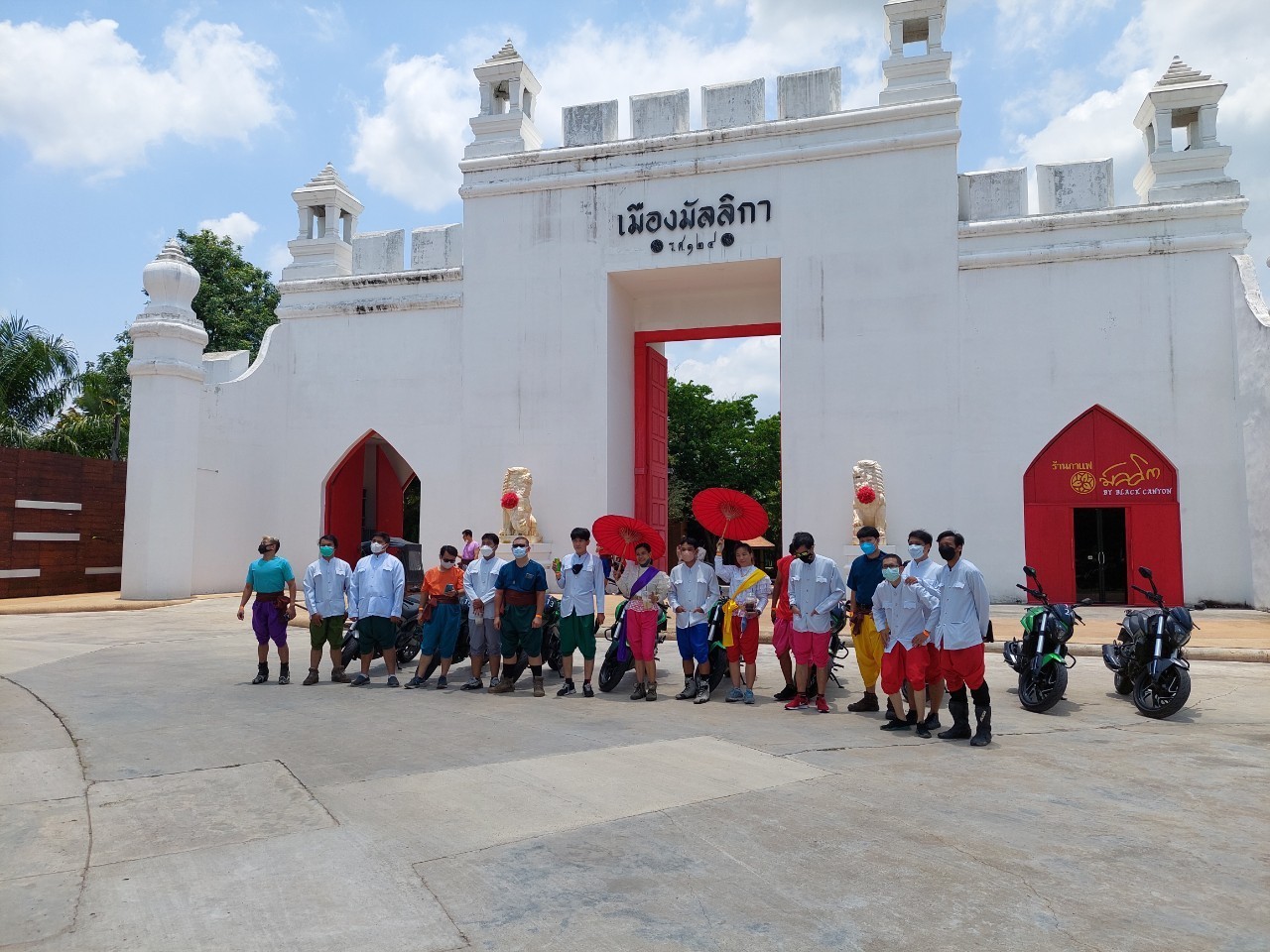 เมื่อไปถึงจุดหมายอย่างเมืองมัลลิกา เหล่าสมาชิก Bajaj Dominar Rides จัดการเปลี่ยนองค์ทรงเครื่องใหม่ด้วยชุดเสื้อผ้าตามแบบสมัยเมื่อ ร.ศ.๑๒๔ พร้อมเดิน   ท่องเที่ยวเก็บภาพเป็นที่ระลึก รวมถึงร่วมทำกิจกรรมตามจุดต่างๆ ที่มีอยู่ในเมืองมัลลิกา จนถึงเวลารับประทานอาหารกลางวัน