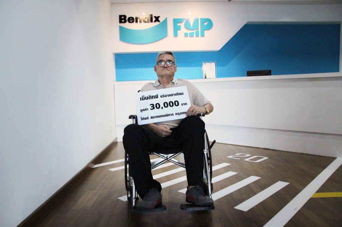 นายประพัฒน์ อัศวาดิศยางกูร ผู้จัดการฝ่ายขายและการตลาดประจำภูมิภาค บริษัท เอฟเอ็มพี ดิสทริบิวชั่น จำกัด ผู้ผลิตและจัดจำหน่าย ผ้าเบรกเบ็นดิกซ์ ได้ให้การสนับสนุนขาเทียม เป็นจำนวนเงิน 30,000 บาท (สามหมื่นบาทถ้วน) ให้กับ สมาคมคนพิการกรุงเทพมหานคร เพื่อประโยชน์แก่คนพิการทั่วถิ่นทุรกันดาร สำหรับผู้พิการที่ด้อยโอกาศให้ได้รับชีวิตใหม่ สำหรับ บริษัท เอฟเอ็มพี ดิสทริบิวชั่น จำกัด ได้จัดกิจกรรมเพื่อสาธารณกุศล อย่างต่อเนื่องเป็น ปีที่ 2 สำหรับการตอบแทนสังคม