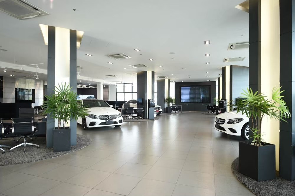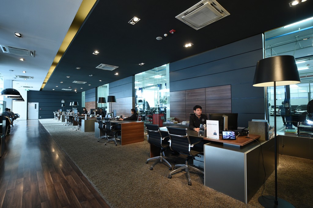 สำหรับในส่วนของโชว์รูมที่มีมูลค่ากว่า 800 ล้านบาท และศูนย์บริการหลังการขาย ไปจนถึงศูนย์ซ่อมสีและตัวถัง เรามีการพัฒนาให้การบริการมีประสิทธิภาพสูงสุด โดยเฉพาะอย่างยิ่งในส่วนของศูนย์บริการมีพื้นที่ใช้สอยกว่า 12,000 ตารางเมตร ได้รับการออกแบบโดยทีมวิศวกรจากประเทศเยอรมัน ที่ดูแลเรื่องสถาปัตยกรรมต่างๆของแบรน์เมอร์เซเดส-เบนซ์ทั่วโลก พร้อมอุปกรณ์เครื่องจักรที่ทันสมัยสามารถรองรับรถยนต์เมอร์เซเดส-เบนซ์ได้ทุกรุ่น อาทิเช่น ลิฟท์ยกรถสำหรับรถ Mercerdes-AMG ซึ่งมีลักษณะพิเศษอยู่ที่ความสูงจากพื้นถึงแป้นยกที่มีเพียง 100 มิลลิเมตร ประกอบกับแขนลิฟท์ที่ออกแบบมาเป็นพิเศษ ทำให้สามารถลอดผ่านรถที่โหลดเตี้ยได้เพื่อยกรถขึ้นสำหรับปฏิบัติงานซ่อมบำรุง และในส่วนงานซ่อมสีและตัวถัง ก็จะมีเครื่องดึงและตัดต่อตัวถังสำหรับงานซ่อมหนักเป็นตัวแรกของศูนย์บริการรถยนต์เมอร์เซเดส-เบนซ์ในประเทศไทย ที่สามารถวัดค่าความเสียหายจากอุบัติเหตุหนักด้วยระบบดิจิตอล เพื่อการซ่อมที่ละเอียดและแม่นยำซึ่งไม่สามารถมองเห็นได้ด้วยสายตา รวมถึงห้องอบสีระบบไฟฟ้าอินฟราเรดที่ให้กำลังความร้อนต่อพื้นที่สูงช่วยให้สีสามารถผ่านเข้าไปในเนื้อวัสดุได้ลึก ทำให้สีแห้งเร็วขึ้น จนถึงปัจจุบัน เบนซ์สตาร์แฟลก มีขีดความสามารถในการให้บริการรถยนต์ได้มากกว่า 100 คันต่อวัน เพื่อตอบสนองความเป็นโชว์รูมและศูนย์บริการ ของรถยนต์เมอร์เซเดส-เบนซ์ที่ดีที่สุดในประเทศไทย