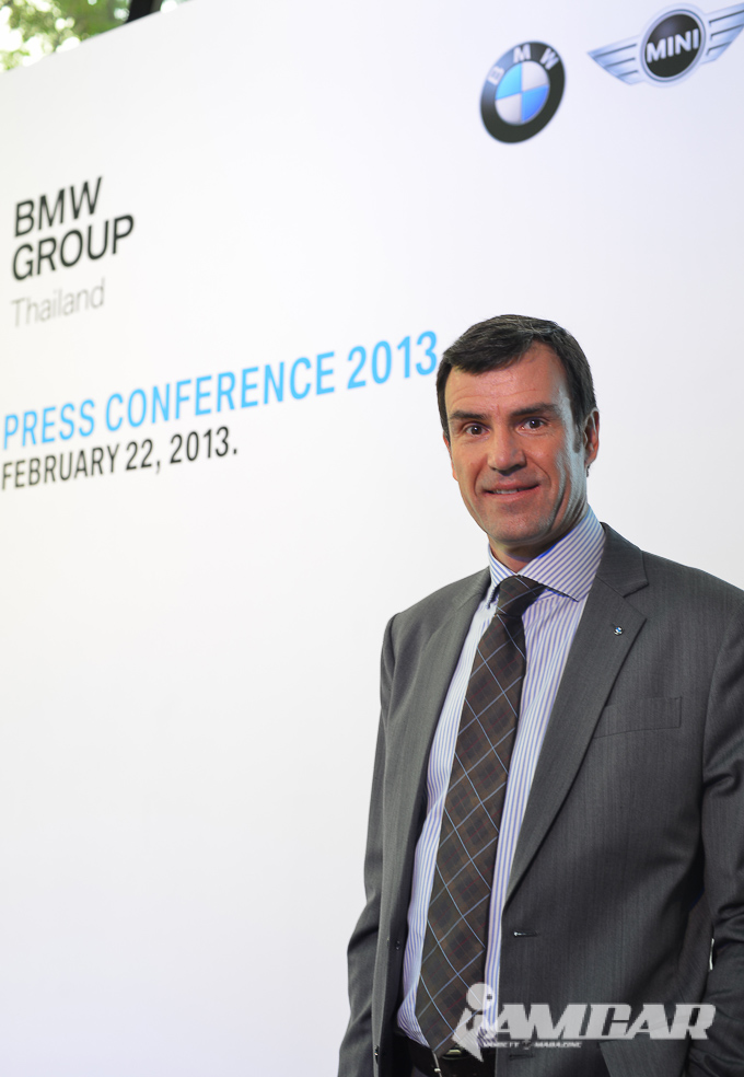 มร. แมทธิอัส พฟาลซ์ ประธาน บีเอ็มดับเบิลยู กรุ๊ป ประเทศไทย กล่าวว่า “ในปี 2556 นี้ บีเอ็มดับเบิลยู กรุ๊ป ประเทศไทย ได้วางแผนที่จะนำเสนอนวัตกรรมทางยานยนต์ใหม่ๆ เพื่อตอบสนองความต้องการในการใช้รถยนต์ที่เปี่ยมด้วยประสิทธิภาพและเทคโนโลยี โดยยังคงไว้ซึ่งความประหยัดน้ำมันเป็นเยี่ยมและรักษาต้นทุนค่าใช้จ่ายสำหรับการเป็นเจ้าของที่คุ้มค่า นอกจากนี้แล้ว ปี 2556 ยังนับเป็นปีแห่งการเริ่มต้นนวัตกรรมทางเทคโนดลยีใหม่ๆสำหรับบีเอ็มดับเบิลยู กรุ๊ป ด้วยรถยนต์ทีขับเคลื่อนด้วยพลังงานไฟฟ้า BMW i3 ที่จะได้รับการเปิดตัวอย่างเต็มรูปแบบภายในปลายปีนี้ สำหรับประเทศไทยนั้น เราพร้อมแล้วที่จะนำเสนอรถยนต์รุ่นใหม่ๆซึ่งพร้อมตอบโจทย์ความต้องการของลูกค้าชาวไทยได้เป็นอย่างดี”
