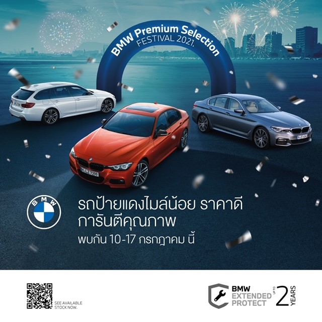 บีเอ็มดับเบิลยู ประเทศไทย ยกขบวนรถยนต์มือสองคุณภาพเยี่ยมพร้อมข้อเสนอสุดคุ้มให้ลูกค้าสัมผัส ทั้งแบบออนไลน์และที่โชว์รูมผู้จำหน่ายทั่วประเทศ ในงาน BMW Premium Selection Festival 2021