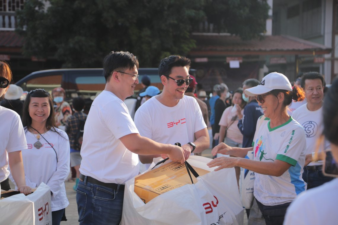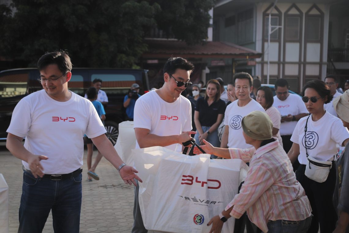 บีวายดี บริษัทเทคโนโลยีชั้นนำที่มุ่งมั่นสร้างนวัตกรรมเพื่อยกระดับคุณภาพชีวิต นำโดยนายเคอ ยู่ปิน ผู้จัดการทั่วไป บริษัท บีวายดี ออโต้ (ประเทศไทย) จำกัด และ บริษัท เรเว่ ออโตโมทีฟ จำกัด ผู้จัดจําหน่ายและให้บริการหลังการขายรถยนต์พลังงานไฟฟ้าบีวายดีอย่างเป็นทางการในประเทศไทย ภายใต้กลุ่มธุรกิจเรเว่ นำโดยนายประธานวงศ์ พรประภา ประธานเจ้าหน้าที่บริหาร กลุ่มธุรกิจเรเว่ ผนึกพลัง บริษัท บีอีซี เวิลด์ จำกัด (มหาชน) หรือ สถานีวิทยุโทรทัศน์ไทยทีวีสีช่อง 3 นำโดยนายชาคริต ดิเรกวัฒนชัย รองกรรมการผู้อำนวยการ สำนักกิจการและสื่อสารองค์กร ช่อง 3 พร้อมคณะดาราจิตอาสาจากช่อง 3 และได้รับเกียรติจากพันเอก ธเนษ ภัทรวรรณ เสนาธิการสำนักงานพัฒนา ภาค 3 หน่วยบัญชาการทหารพัฒนา กองบัญชาการกองทัพไทย ลงพื้นที่จังหวัดเชียงราย ร่วมใจบรรเทาสาธารณภัยจากน้ำท่วม มอบเครื่องใช้ไฟฟ้าและสิ่งของอุปโภคบริโภคที่จำเป็นมูลค่ารวมกว่า 1,000,000 บาท ให้แก่ประชาชน 1,000 ครัวเรือน ที่ได้รับผลกระทบจากอุทกภัยครั้งใหญ่ในพื้นที่ภาคเหนือ โดยลำเลียงส่งเครื่องใช้ไฟฟ้าที่จำเป็นต่อการดำรงชีพ เข้าพื้นที่ที่ต้องการความช่วยเหลือจากตัวเมืองเชียงรายไปยังพื้นที่อำเภอแม่สาย ด้วย BYD M6, BYD ATTO 3, BYD SEALION 6 และ BYD T3 พร้อมได้รับการสนับสนุนรถปฏิบัติการขนย้ายผู้ประสบภัย จากสำนักงานป้องกันและบรรเทาสาธารณภัยจังหวัดเชียงราย รวมถึงคณะรถใหญ่อีกมากมายร่วมในการขนย้ายครั้งนี้