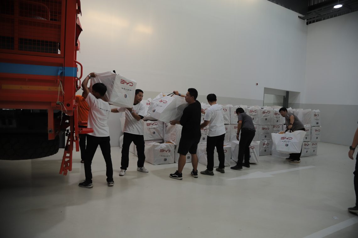 การส่งต่อกำลังใจและให้ความช่วยเหลือแก่พี่น้องชาวไทยให้ก้าวผ่านวิกฤติการณ์และสามารถกลับมาใช้ชีวิตได้ตามปกติโดยเร็วในครั้งนี้ ได้รับการสนับสนุนเอื้อเฟื้อพื้นที่ในการรวบรวมและบรรจุของ ณ โชว์รูม บีวายดี นกเงือก ศรีทรายมูล โดยผู้บริหารทั้งหมด ดีลเลอร์ของบีวายดีในจังหวัดเชียงราย พร้อมทั้งผู้สื่อข่าวที่เดินทางไปจากกรุงเทพฯ และในพื้นที่ ได้ร่วมแรงร่วมใจกันจัดสรรสิ่งของด้วยใจช่วยเหลืออย่างเต็มกำลัง