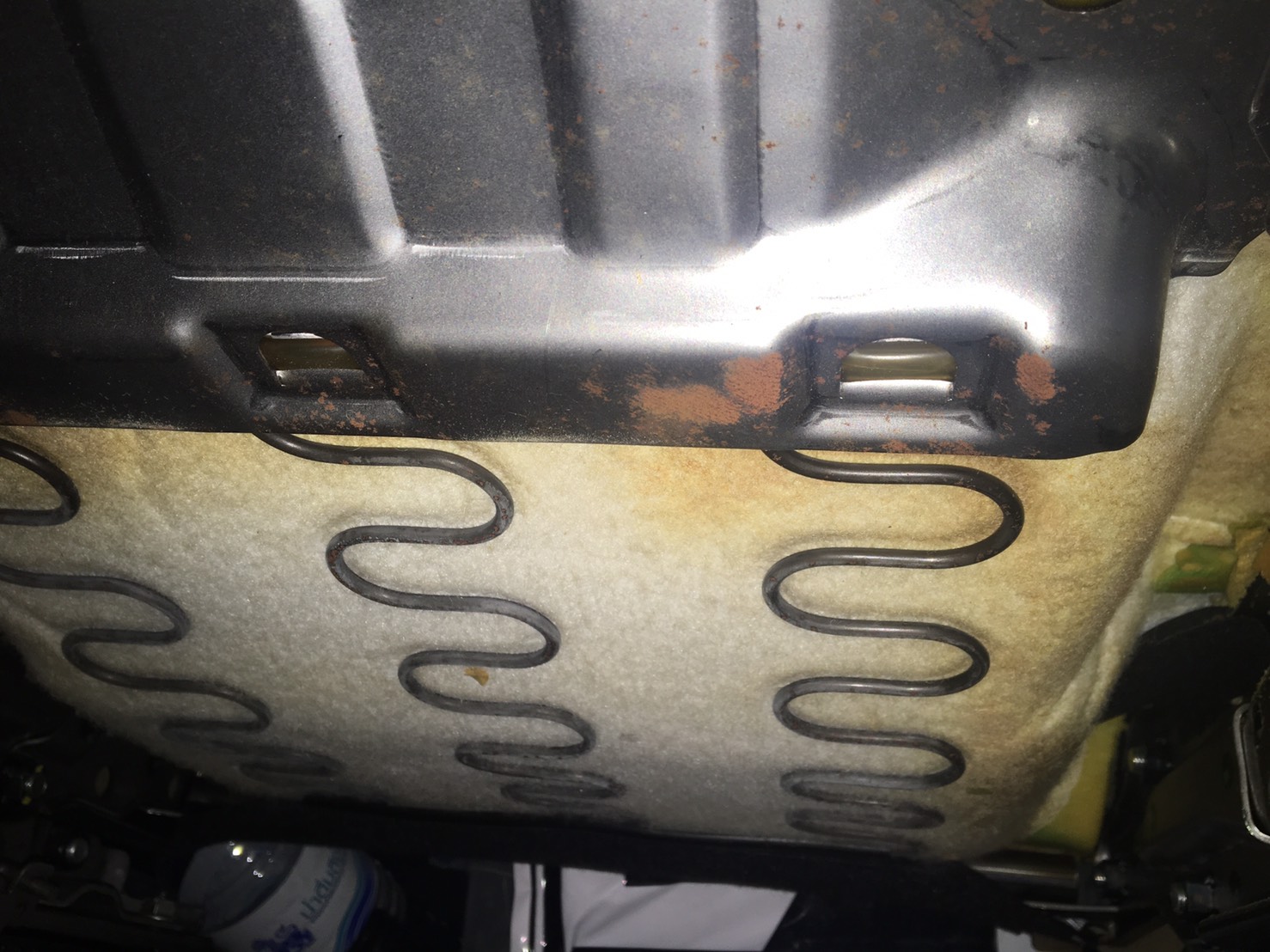 – เริ่มกันที่มองแห็นง่ายกันก่อนก็คือ หัวน็อตบริเวณรางเบาะจะมีคราบสนิมหรือขี้เกลือ ก้มไปดูสปริงใต้เบาะให้เอามือล้วงลูบดูสนิมจะติดมือออกมาเป็นผงๆ