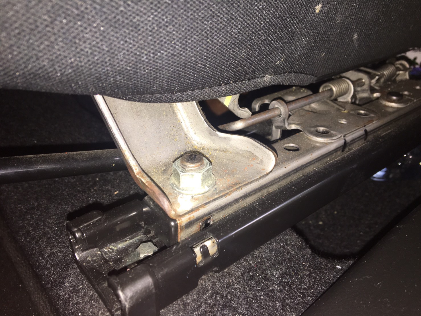 – เริ่มกันที่มองแห็นง่ายกันก่อนก็คือ หัวน็อตบริเวณรางเบาะจะมีคราบสนิมหรือขี้เกลือ ก้มไปดูสปริงใต้เบาะให้เอามือล้วงลูบดูสนิมจะติดมือออกมาเป็นผงๆ