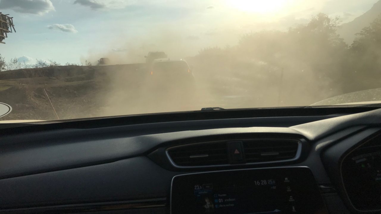 แล้วนี่ไม่ใช่แค่คันเดียว เบ็ดเสร็จกว่า 20 คัน ที่ร่วมเดินทางในคาราวาน ลองนึกดูว่า เอาแค่คันที่ 5 เป็นต้นไป ก็แทบมองไม่เห็นทางแล้ว ยิ่งคันหลังๆ ท้ายขบวนยิ่งแล้วใหญ่ อย่างกับหมอกหนาจัดลงหนักเลยคราวนี้
