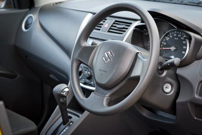 การออกแบบภายในโดยทีมพัฒนา CELERIO มุ่งเป้าไปที่ความเรียบง่าย กว้าง โปร่ง โล่ง ร่วมสมัยอยู่เสมอ ใช้งานง่าย จึงเน้นโทนสีดำเป็นหัวใจหลักของการตกแต่งภายใน แต่ตัวเบาะออกแบบให้อารมณ์วัยรุ่นนิดหน่อย ใช้เนื้อผ้าบุเบาะหลักเป็นลายจุดสีเหลือง เพื่อให้โดนใจกลุ่มเป้าหมาย ในส่วนของการออกแบบคอนโซลดีไซน์ไม่ได้โฉบเฉี่ยวนัก แต่ว่ามีการใช้เส้นสายหนาบาง ทำให้เกิดมิติที่น่าชวนมอง ประกอบกับการวางตำแหน่งเครื่องเล่น CD พร้อมช่องต่อ USB แบบ Built in ปุ่มควบคุมเครื่องปรับอากาศ ที่ใช้งานแบบง่ายๆ ทำให้เนียนกริบไปทั้งคอนโซล ขยับลงมาที่คอนโซลเกียร์มีการจัดวางในตำแหน่งที่เหมาะมือ หัวเกียร์มีอยู่ 2 ปุ่มให้ใช้งาน คือ ปุ่มคายล็อค กับปุ่มเปลี่ยนเป็นโหมด Sport ที่สำคัญที่แป้นเกียร์มีปุ่ม “ปลดล็อค” เกียร์ ให้สามารถใส่เกียร์ว่างเวลาคุณจอดรถขวางคันอื่น มาดูส่วนของมาตรวัดเรือนไมล์ แบ่งเป็น 3 ช่อง มาตรวัดความเร็วขนาดใหญ่ตรงกลาง ฝั่งซ้าย เป็นมาตรวัดรอบขนาดเล็ก ฝั่งขวา เป็นหน้าจอ Digital Multi Information Display แสดงข้อมูล ทั้ง ระยะทางรวม ระยะทาง Trip Meter ทั้ง Trip A และ B อัตราสิ้นเปลืองเชื้อเพลิง ทั้งแบบ Real Time และแบบเฉลี่ย รวมทั้งระยะทางที่น้ำมันในถัง เหลือพอให้วิ่งต่อไปได้ และสามารถปรับความสว่างของไฟบนแผงหน้าปัดทั้งหมด ส่วนพวงมาลัยแบบ 3 ก้าน หุ้มด้วย ยูรีเทน หน้าตาเหมือนรุ่นพี่สวิฟท์ สามารถปรับระดับได้ ตัวกุญแจเป็นแบบมีสวิตช์รีโมท สั่งล็อก – ปลดล็อกประตูมาให้ในตัว กดเพียงครั้งเดียวปลดล็อคประตูฝั่งคนขับเท่านั้น กดปุ่มปลดล็อก 2 ครั้ง ประตูทั้ง 4 บาน จะถูกปลดล็อกออกทั้งหมด มีระบบ Immobilizer มาให้ด้วย ปิดท้ายภายในด้วยการเซอร์ไพรส์ของความกว้างขวางความจุสำหรับเก็บสัมภาระมากถึง 254 ลิตร สำหรับผมจากที่อยู่ด้านในกับรถ All New SUZUKI Celerio “ออล นิว ซูซูกิ เซเลริโอ” มาเป็นอาทิตย์ วันละ 5-6 ชม. เสน่ห์ยังอยู่ที่ความกว้าง คือ เป็นรถเล็กที่ไม่อึดอัด พื้นที่เหนือศีรษะเหลือเยอะ แม้ตัวผมเองจะสูง 180 ซม. ส่วนภายในถึงแม้จะไม่ได้มีฟังค์ชั่นการใช้งานมากมายนัก แต่สิ่งจำเป็นของผู้ใช้รถในยุคดิจิตอลเช่น ช่อง USB มาตรวัดอัตราสิ้นเปลืองเชื้อเพลิง ทั้งแบบ Real Time และแบบเฉลี่ย และวัดระยะทางที่น้ำมันในถัง เหลือพอให้วิ่งต่อได้ สำหรับแค่นี้ก็ถือว่าพอแล้วที่จะใช้งานในชีวิตประจำวัน ส่วนความปลอดภัยของภายในยังมี Air Bag 2 ใบทั้งที่พวงมาลัยและคอนโซลฝั่งผู้โดยสาร ส่วนเข็มขัดนิรภัยมีให้ครบทั้ง 5 ที่นั่งครับ