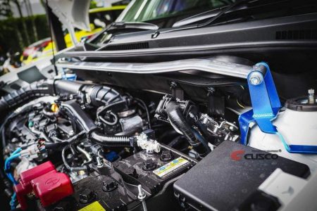 อีกทั้งยังเสริมความแน่นของตัวช่วงล่างให้กระชับยิ่งขึ้นด้วย ค้ำหน้า กันโคลงหน้า กันโคลงหลัง 16mm Power brace front member ค้ำคานหน้า Power brace front ค้ำตัวถังหน้าล่าง Power brace rear ค้ำตัวถังหลังล่าง Power brace rear pillar ที่ทั้งหมดนั้นก็เป็นของ Cusco จบสุดท้ายด้วยชุดท่อไอเสียแบบตรงรุ่นของ Fujitsubo RIVID