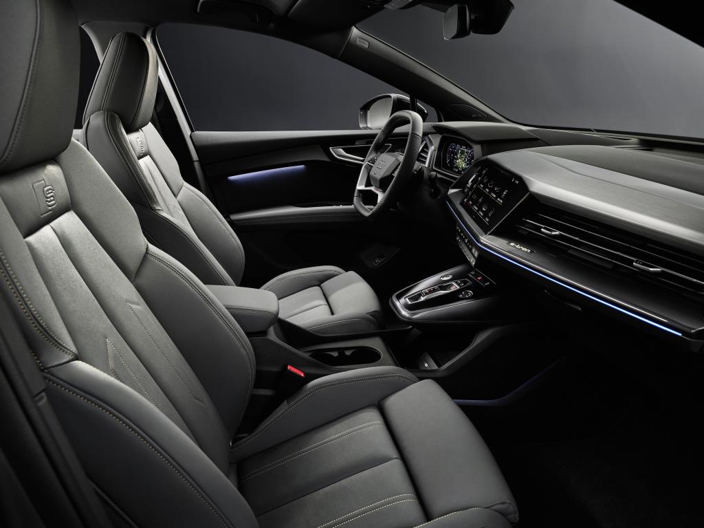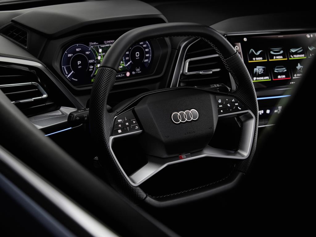 ภายในห้องโดยสารของ Q4 e-tron และ Q4 Sportback e-tron ใช้เทคโนโลยี Augmented Reality หรือ AR ร่วมกับการแสดงข้อมูล Head-up Display โดยระบบถูกออกแบบให้เหมือนการดูข้อมูลบนจอขนาด 70 นิ้วที่อยู่ห่างออกไป 10 เมตร และนอกจากการแสดงข้อมูล Head-up Display แล้ว Q4 e-tron ก็ยังมาพร้อมกับจอขนาด 11.6 นิ้วตรงกลางสำหรับระบบ Infotainment ที่ถูกวางทำมุมเข้าหาผู้ขับ และจอแสดงข้อมูลผู้ขับขนาด 10.1 นิ้ว
