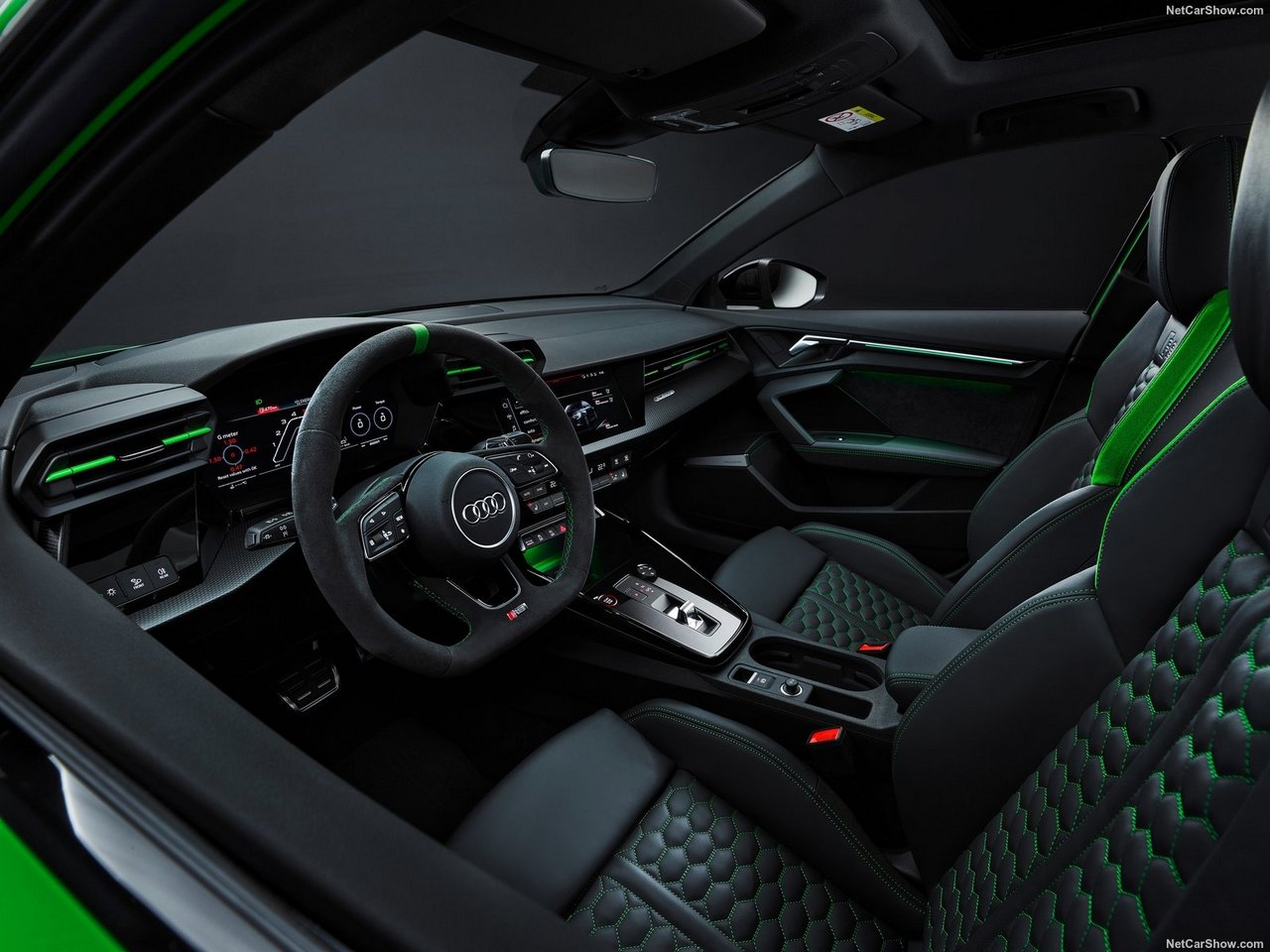 อีกทั้งยังมีอุปกรณ์อำนวยความสะดวกสบายที่ตอบโจทย์ฐานะของตัวแรงสไตล์ RS ติดตั้งมาให้อีกด้วย ไม่ว่าจะเป็นหน้าจอ Audi Virtual Cockpit Plus ขนาด 12.3 นิ้ว พร้อมโปรแกรมพิเศษอย่างการแสดงผลการค่า G-Force, การจับเวลาต่อรอบ หรือ อัตราเร่ง ที่มีตั้งแต่ 0-100 กม./ชม., 0-200 กม./ชม. และแบบควอเตอร์ไมล์, โปรแกรมปรับเปลี่ยนรูปแบบการขับขี่ Audi Drive Select ที่มีโหมด RS เป็นไฮไลต์ มาพร้อมกับฟังค์ชั่น RS Monitor ที่แสดงผลได้ทั้งจากบนหน้าจอ Infotainment ระบบสัมผัสขนาด 10.1 นิ้ว และหน้าจอ Head Up Display ที่ติดตั้งมาให้เป็นครั้งแรก