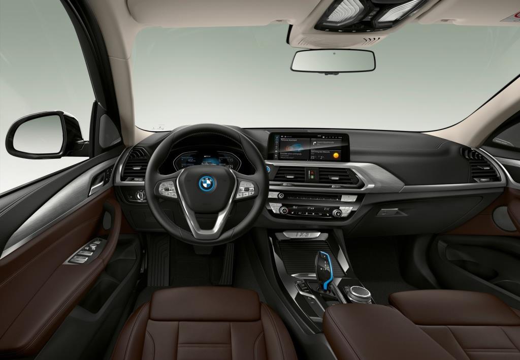 ภายในห้องโดยสารของ BMW iX3 แทบจะไม่ต่างจาก BMW X3 มากนัก ซึ่งจะมีก็เพียงแต่ใส่รายละเอียดของความเป็นรถไฟฟ้าเข้าไป ไม่ว่าจะเป็น ปุ่ม Start/Stop โลโก้บนพวงมาลัยและคันเกียร์อัตโนมัติขอบสีฟ้า ส่วนคอนโซลหน้าได้เพิ่มโลโก้ BMW i จอแสดงผลเป็นแบบสีฟ้า แต่ยังคงใช้ชุดควบคุมเครื่องเสียง iDrive พร้อมรองรับการเชื่อมต่อผ่านสมาร์ทโฟนบนแอปพลิเคชั่น BMW Apps