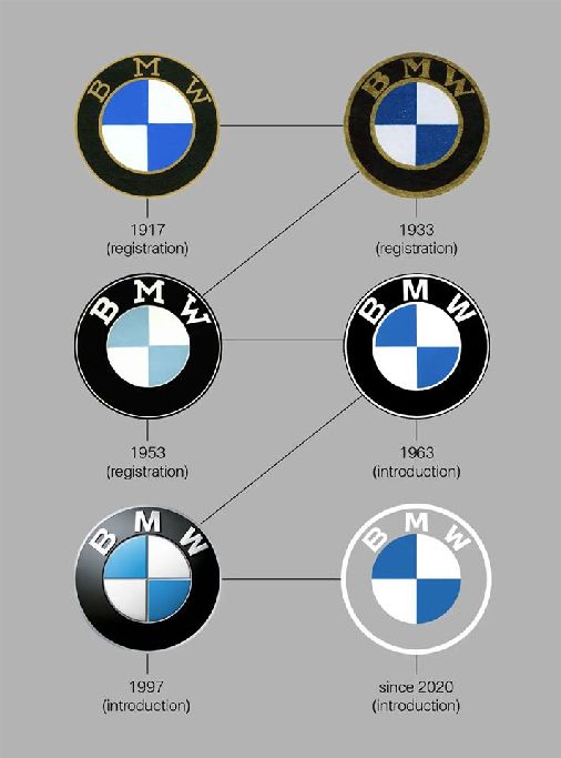 โดยหากนับตั้งแต่จุดเริ่มต้นของตราสัญลักษณ์ในปี 1917 จนถึงปัจจุบัน 2020 นับเป็นระยะเวลาถึง 103 ปีแล้วของแบรนด์ BMW และมีการเปลี่ยนแปลงให้เห็นถึง 6 ครั้ง หลังจากปี 1917 คือ ปี 1933 ที่ยังคงมีลักษณะที่ใกล้เคียงกัน ยกเว้นความต่างในเรื่องของตัวอักษร BMW และขอบวงกลมโทนสีทองที่ออกแบบให้มี “ความหนา” ขึ้นจากเดิม