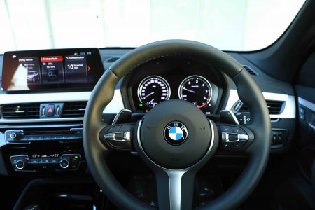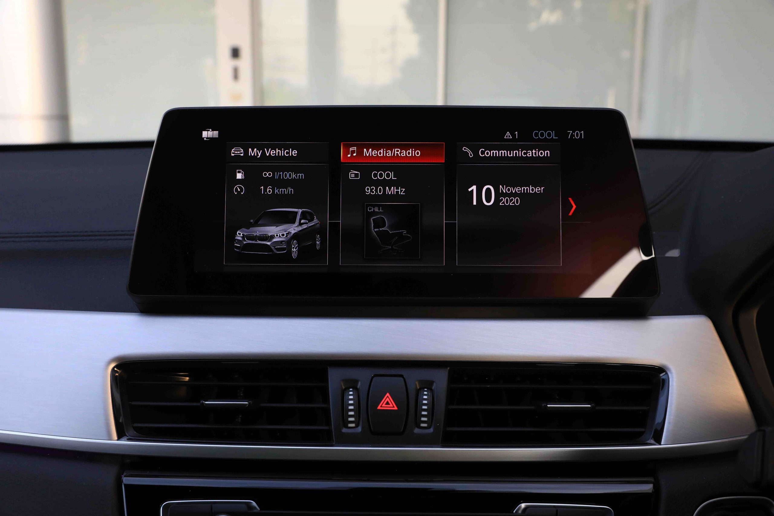X1 เด่นชัดด้วยสีของแผงคอนโซลแบบใหม่ที่ตัดกันอย่างมีสไตล์ ด้วยสีดำบริเวณแถบคอนโซลด้านบนและส่วนล่างในโทนสีเดียวกับสีเครื่องหนังในห้องโดยสาร ส่วนจอ Control Display ขนาด 8.8 นิ้ว (10.25 นิ้วในรุ่น xLine และ M Sport) สามารถควบคุมผ่านระบบ iDrive ระบบการสั่งงานด้วยเสียง หรือระบบสัมผัสได้ตามความถนัดของผู้ขับขี่