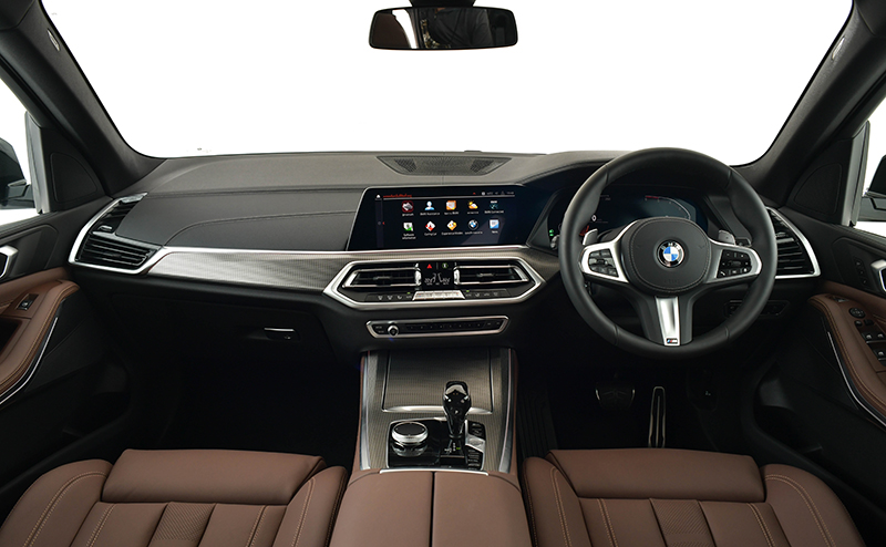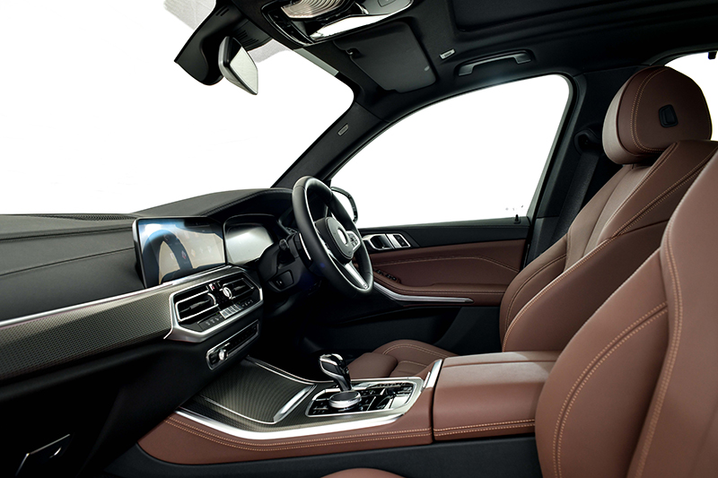 พร้อมด้วยเบาะนั่งหนังแท้ Vernasca และพวงมาลัยมัลติฟังก์ชั่นแบบ M Sport และยังมีหลังคากระจกแบบ Panorama ที่มีขนาดใหญ่ขึ้นกว่ารุ่นก่อนหน้า 30% พร้อมระบบ Driving Experience Control เลือกรูปแบบการขับขี่พร้อม ECO PRO ที่ได้รับการติดตั้งเป็นอุปกรณ์พื้นฐานใน BMW X5 xDrive30e M Sport ใหม่