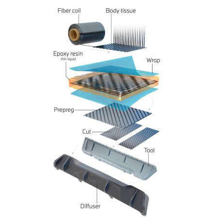 คาร์บอนไฟเบอร์ เกิดขึ้นได้โดยการนำเอาเส้นใยคาร์บอนที่มีขนาดเล็กมากๆ หรือที่เรียกย่อๆว่า PAN ซึ่งเจ้าตัว PAN นี้มันมีเส้นผ่าศูนย์กลางเล็กกว่าเส้นผมของคนเราประมาณ 10 เท่า โดยจะมีโครงสร้างเส้นใย ประมาณ 50,000 เส้นรวมกันเป็นมัดไฟเบอร์ที่เรียกว่า rovings ซึ่ง rovings จะถูกนำไปเผาที่ความร้อนประมาณ 3,000 องศาเซลเซียส จนเส้นใยเปลี่ยนจากสีขาวกลายเป็นสีดำก่อนจะนำมาทอเป็นผืนคล้ายผืนผ้า และเคลือบทับด้วยสารโพลิเมอร์ เพื่อให้ตัวผ้า Carbon Fiber สามารถคงรูปอยู่ได้