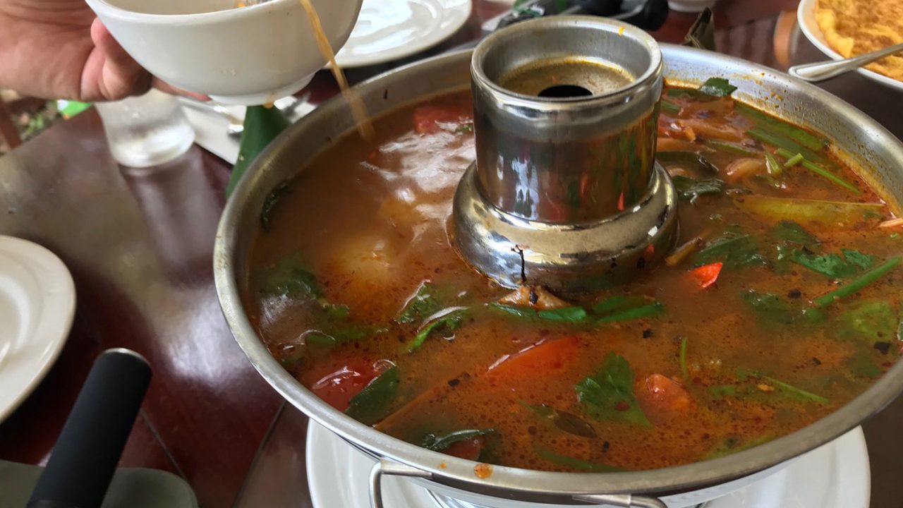 พอเปลี่ยนพรมแดนเท่านั้นแหละ รสชาติอาหารการกิน เปลี่ยนไปทันที กับข้าวที่นี่ ดูมีรสมีชาติขึ้นเยอะ ถูกปากเราคนไทยมากกว่ารสชาติอาหารของกัมพูชา ความจัดจ้าน มีมากกว่าเดิมเยอะ ขนาดไข่เจียวในความทรงจำผู้เขียน เมื่อกว่าสิบปีก่อน นี่กินแทบไม่ได้ แต่มาวันนี้ อร่อยกลมกล่อม จนทำให้ผู้เขียน และผู้ร่วมทริปจัดเต็มกันเลยทีเดียว