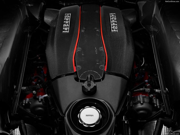 โดยพละกำลังสูงสุดที่มีมาให้ใช้ คือ ตัวเลขระดับ 710 แรงม้าที่ 8,000 รอบต่อนาที และแรงบิดสูงสุด 770 นิวตันเมตรที่ 3,000 รอบต่อนาที หน้าที่ถ่ายทอดพละกำลังนั้นมากับระบบเกียร์คลัทข์คู่ 7 สปีดแบบ F1 ที่ได้รับการอัพเกรดใหม่ พร้อมด้วยการติดตั้งตัวช่วยด้านอิเล็กทรอนิคส์ต่างๆ เช่น ระบบ Ferrari Variable Torque Management Strategy เพื่อทำหน้าที่จัดสรรแรงบิดให้เหมาะสม