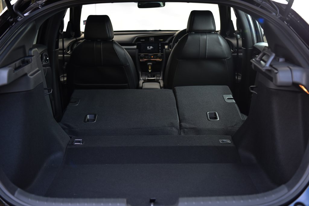 แต่สำหรับผมมองในเรื่องของความอเนกประสงค์ที่ได้พื้นที่ใช้สอยมากขึ้นมากกว่า ภายในห้องโดยสารของ All-New Honda Civic Hatchback ความสะดวกสบาย และกว้างขวาง มีเพิ่มขึ้นแน่นอน พร้อมความหลากหลายของพื้นที่บรรทุกสัมภาระด้านท้ายที่จุได้ถึง 414 ลิตร โดยพนักพิงของเบาะหลังสามารถปรับพับแยกได้แบบ 60:40 ซึ่งหากปรับพับเบาะที่นั่งด้านหลังลงทั้งหมด จะช่วยเพิ่มพื้นที่ความจุได้มากยิ่งขึ้นไปอีก นั้นหมายถึงว่าคุณสามารถวางของทรงยาวอย่างไปซื้อต้นไม้ หรือจักรยานได้อย่างสบาย แถมยังติดตั้งม่านปิดสัมภาระที่สามารถเลือกปิดเก็บได้ทั้งซ้ายและขวา เพื่อป้องกันไม่ให้มองเห็นสัมภาระที่อยู่ด้านท้าย