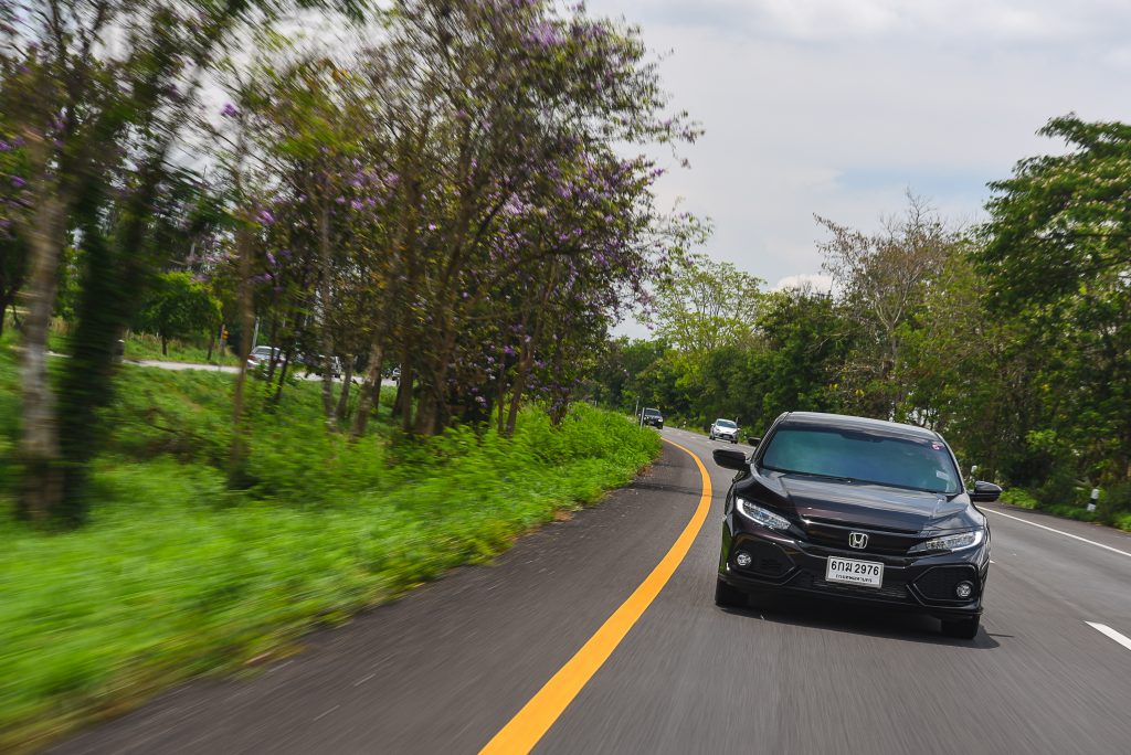 หลังจาก เปิดตัว All-New Honda Civic Hatchback ในรูปแบบ “แฮทช์แบ็ก 5 ประตู” เน้นเอกลักษณ์แห่งความสปอร์ตพรีเมียม ที่พร้อมด้วยฟังก์ชั่นความเอนกประสงค์ และสมรรถนะการขับขี่ที่สนุกเร้าใจ ผ่านมาไปกี่เพลาทาง บริษัท ฮอนด้า ออโตโมบิล (ประเทศไทย) จำกัด ร้อนใจอยากให้สื่อมวลชนได้ทำการทดสอบ รีวิว สมรรถนะอันเล่อเลิศของรถรุ่นนี้ โดยใช้เส้นทาง หัวหิน – แก่งกระจาน ที่มีทั้งทาง High Way ที่สามารถใช้ความเร็ว และ โค้งลักษณะต่างๆ ขับกันคนละประมาณเกือบๆ 100 กม. เราเริ่มต้นดูความเปลี่ยนแปลงเด่นๆ ก่อน คงไม่หนีในด้านของรูปลํกษณ์องค์ประกอบตัวรถเนื่องจากเดิมเป็นลักษณะของซีดาน 4 ประตู แต่ในโฉมนี้เป็น Hatchback 5 ประตู จึงมาความต่างกันพอสมควร หากคุณมองตัวรถดีๆ จะเห็นรูปลักษณ์ที่โฉบเฉี่ยวและหรูหราด้วยเส้นสายด้านข้างตัวรถที่คมชัด เน้นความเป็นสปอร์ตและดุดันยิ่งขึ้นด้วยกระจังหน้า-หลังดีไซน์รังผึ้ง ไฟหน้าสไตล์สปอร์ตพร้อมไฟส่องสว่างสำหรับการขับขี่ในเวลากลางวันแบบ LED และไฟท้ายรูปทรงตัว C แบบ LED และโดดเด่นยิ่งขึ้นด้วยรูปลักษณ์ด้านท้ายในสไตล์ “แฮทช์แบ็ก 5 ประตู” ที่ดูโดดใจมากกว่าเดิม