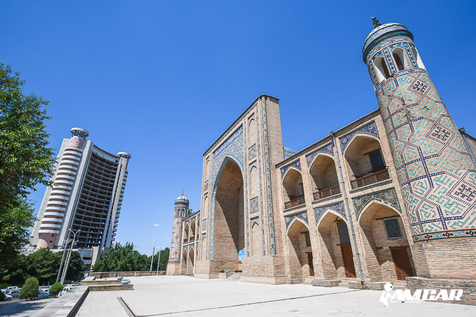 วันนี้เป็นวันสุดท้ายที่ผมจะได้อยู่กับ Hilux Revo Caravan Trip ที่เมืองทาชเคนต์ ประเทศอุซเบกิสถาน โดยคาราวานจะหยุดพัก 1 วัน เพื่อตรวจเช็คสภาพรถ เพราะจากกรุงเทพฯ จนมาถึงที่นี่รวมระยะทางถึง 8,387 กิโลเมตรแล้ว เรียกได้ว่าผ่านสภาพถนน ภูมิประเทศ และสภาพภูมิอากาศอันแปรปรวนมาทุกรูปแบบ วันนี้จึงถือโอกาสพักทั้งรถตรวจเช็คกันสักรอบ เพื่อเตรียมพร้อมส่งต่อการเดินทางในช่วงต่อไปให้ Group 3 ก่อนที่ผมจะกลับเมืองไทยได้มีโอกาสไปชมความงดงามของประเทศอุซเบกิสถาน โดยสถานที่แรกที่ทีมคาราวานได้ไปเยี่ยมชมคือ ตลาดชอร์ซู (Chorsu Bazaar) ตั้งอยู่ใจกลางกรุงทาชเคนต์ในส่วนของเมืองเก่า ตลาดแห่งนี้เคยเป็นชุมทางการค้าบนเส้นทางสายแพรไหมในอดีต มีอาคารเป็นรูปทรงกลม และหลังคาโดมขนาดใหญ่ เป็นศูนย์สรรพสินค้าและตลาดสดที่คึกคัก รอบๆ อาคารยังมีร้านขายสินค้าอุปโภค บริโภค ของที่ระลึก และร้านอาหารอีกมากมาย เรียกว่าเป็นตลาดที่คับคั่งและมีความวุ่นวายที่สุดของเมืองเลยก็ว่าได้ บริเวณนี้ยังมีมัสยิดจูมาร์ กับ กูเกลดัช มาดรัสซา (โรงเรียนสอนศาสนาในอดีต) ซึ่งเป็นสถาปัตยกรรมแบบดั้งเดิมที่น่าสนใจมาก