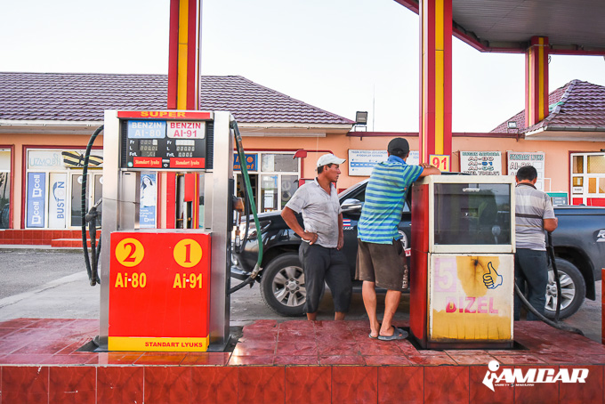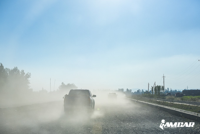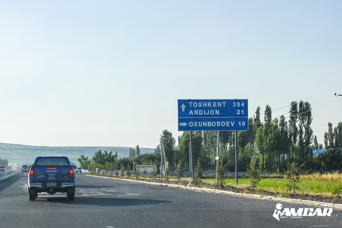 ภาระกิจของเราไม่จบเพียงเท่านี้ยังเหลือระยะทางอีก 380 กม. ช่วงแรกนี้ทางค่อนข้างขรุขระ เรียกได้ว่ามาทดสอบความนิ่มของช่วงล่างกันก่อนเลย ซึ่ง Revo ก็ผ่านมาได้ด้วยดี แต่หนทางยังอีกไกลเหลือเกินจึงตัดสินใจแวะรับประทานอาหารเย็นก่อนที่ร้านอาหารพื้นเมืองของอุซเบกิสถาน ก่อนจะออกเดินทางกันต่อ โดยตั้งแต่ผ่านด่านประเทศจีนที่เมืองคาชการ์มาจนถึงขณะนี้ ทั้งที่ต้องขับขึ้น-ลงเขากันตลอดทางกว่า 550 กิโลเมตร เรายังไม่ได้เติมน้ำมันกันเลยจึงต้องแวะเติมน้ำมันที่อุซเบกิสถานคันละ 30 ลิตร ให้เต็มถัง และออกเดินทางกันต่อ และสักพักก็ยังเจอกับด่านตรวจหนังสือเดินทางอีกถึง 2 ด่าน โดยในด่านที่สองมีการตรวจที่ละเอียดมาก ขนาดที่ทุกคนต้องลงจากรถเพื่อไปเข้าแถวตรวจเป็นรายบุคคล ทำให้เสียเวลาไปอีกหลายชั่วโมงเมื่อต้องผ่านการตรวจอันเข้มข้นมาถึง 4 ครั้ง ภายในวันเดียว ทำให้ผมนึกถึงคนต่างด้าวที่มาบ้านเราว่าเค้าน่าสงสารขนาดไหน
