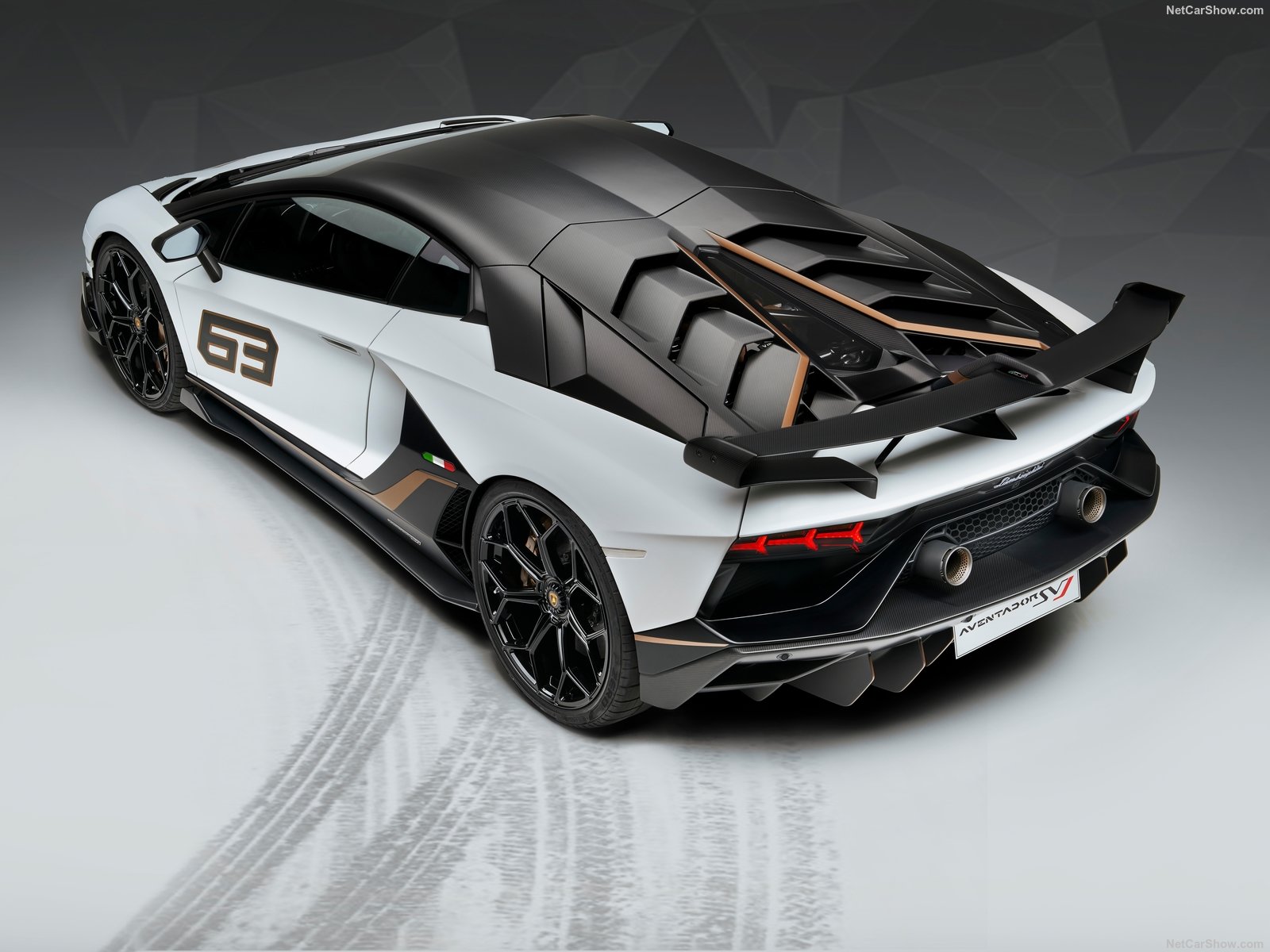เสริมความสะดุดตาด้วย Rear Wing ขนาดยักษ์ดีไซน์ใหม่ ที่จัดเรียงกระแสลมในส่วนของปีกด้านข้าง ทำให้ใช้ความเร็วสูงในทางโค้งได้ดี ซึ่งโดยรวมแล้วการปรับแต่งทั้งหมดได้ช่วยเพิ่มแรงกดได้มากกว่า 40% และลดแรงเสียดทานลง 1% เมื่อเทียบกับรุ่น Aventador SV