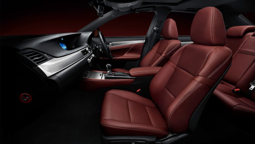 ภายในห้องโดยสารมากับเบาะนั่งหุ้มหนังแท้สี Dark Rose ออกแบบมาสำหรับเวอร์ชั่น F Sport โดยเฉพาะแบบปรับไฟฟ้า พร้อมหน่วยความจำ 3 หน่วย และเบาะรองนั่งแบบปรับความยาวได้ รวมถึงระบบปรับอุณหภูมิเบาะนั่ง, หัวเกียร์หุ้มหนัง, พวงมาลัยหุ้มหนัง F Sport Leather พร้อมแป้นเปลี่ยนเกียร์ Paddle Shift ตามด้วยความพิเศษจากชุดแป้นเหยียบอลูมิเนียมเฉพาะเวอร์ชั่น F Sport