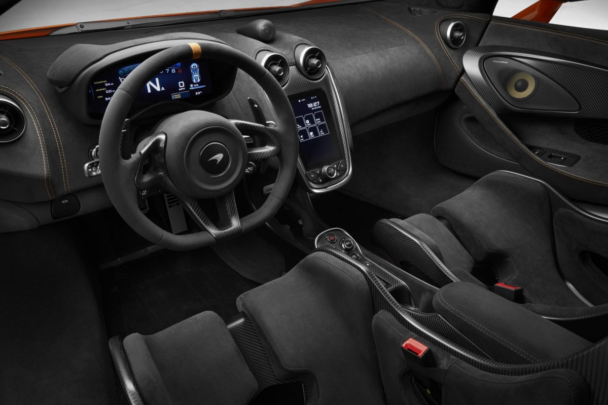 ภายในห้องโดยสารมาพร้อมกับความสปอร์ตอย่างเต็มขั้นโดยผสานความเป็ฯรถแข่งกับรถบ้านเข้าไว้ด้วยกันอย่างลงตัว ตั้งแต่ชุดเบาะทรงบัคเก็ตซีท ตกแต่งด้วยหนัง Alcantara แบบพิเศษ และหากลูกค้าต้องการความสุดเพิ่มขึ้นก็สามารถสั่ง เบาะคาร์บอนไฟเบอร์ชนิด ซูเปอร์ไลท์เวท แบบที่ใช้ใน McLaren Senna และยังมีหลังคาคาร์บอนไฟเบอร์ และพาร์ทน้ำหนักเบาโดย 600LT จะเป็นรถที่เป็นตัวแทนของการเพิ่มประสิทธิภาพในด้านอากาศพลศาสตร์