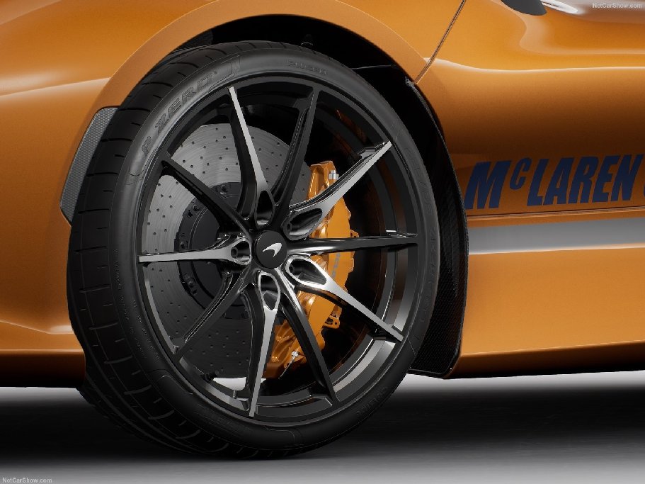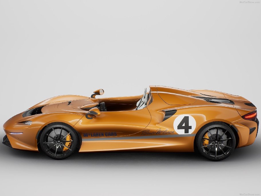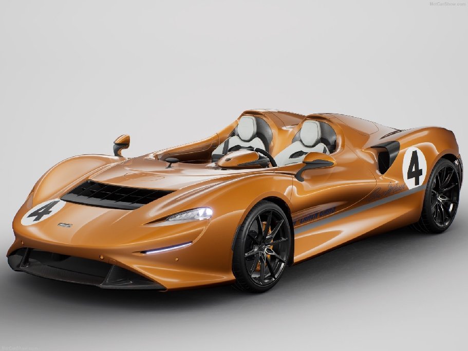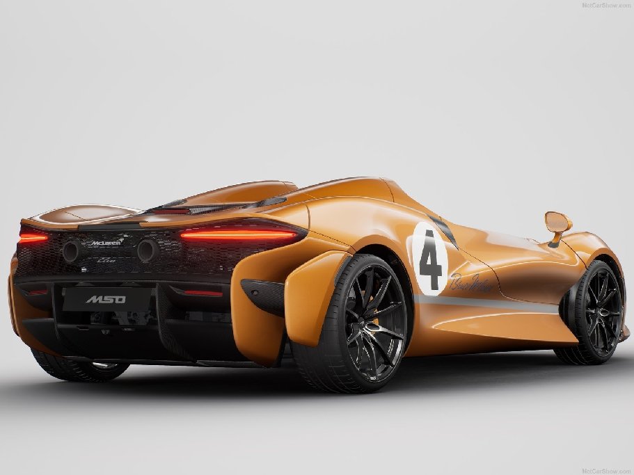 ตามด้วยเพิ่มรายละเอียดภายนอก กับชุดสติ๊กเกอร์ตัวอักษรโทนสีน้ำเงินคำว่า “McLaren Cars”, “ลายเซ็น Bruce” ปิดท้ายด้วยสติ๊กเกอร์ “หมายเลข 4” ซึ่งเป็นหมายเลขรถแข่งของ Bruce ขณะที่ล้อมาตรฐานก็มาพร้อมความพิเศษด้วยวัสดุ Satin Carbon Fibre แบบ 10 ก้านลาย Diamond Cut ที่ตัดกับโทนสีส้มของชุดคาลิปเปอร์เบรกด้านใน